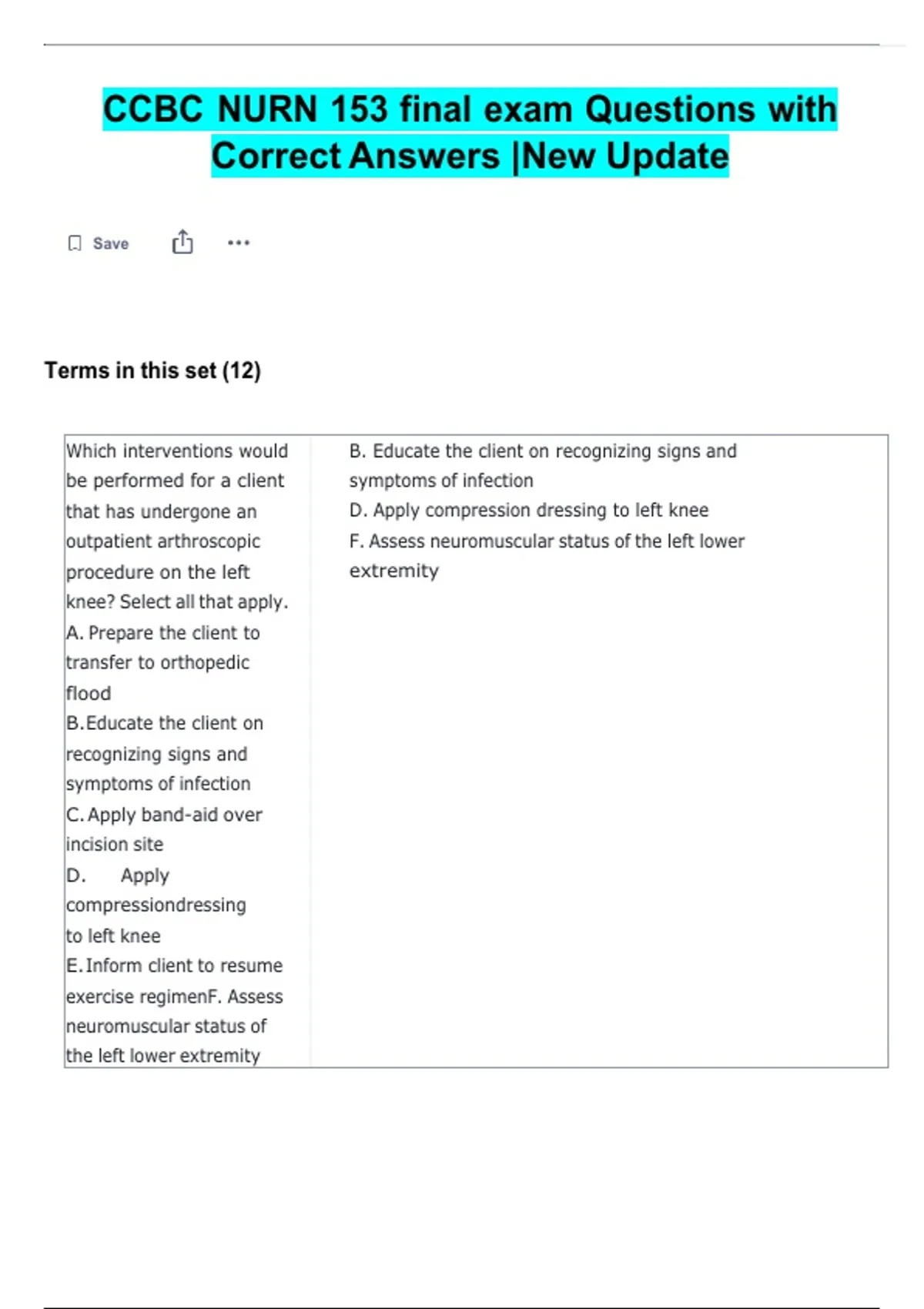 CCBC NURN 153 final exam Questions with