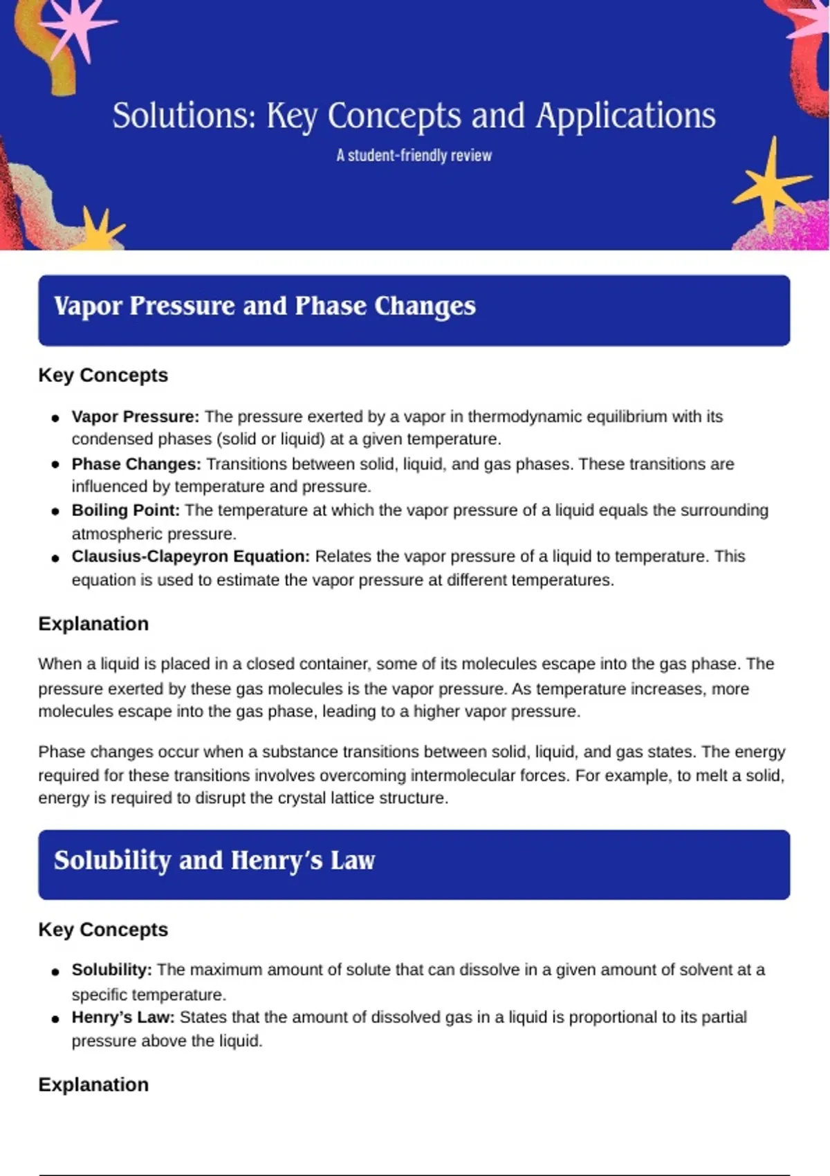 Clausius-Clapeyron Equation: Relates the vapor pressure of a liquid to temperature. This