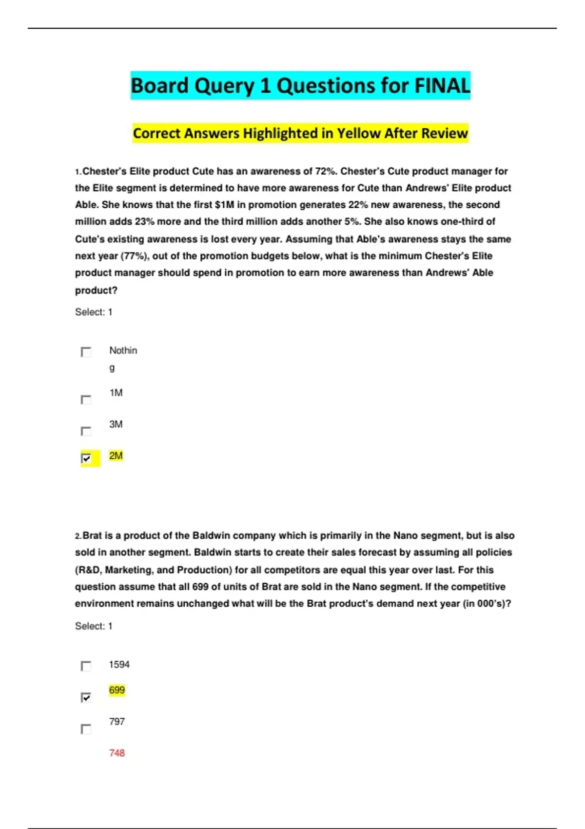 Board Query 1 Questions and Answers for FINAL COMP XM EXAM