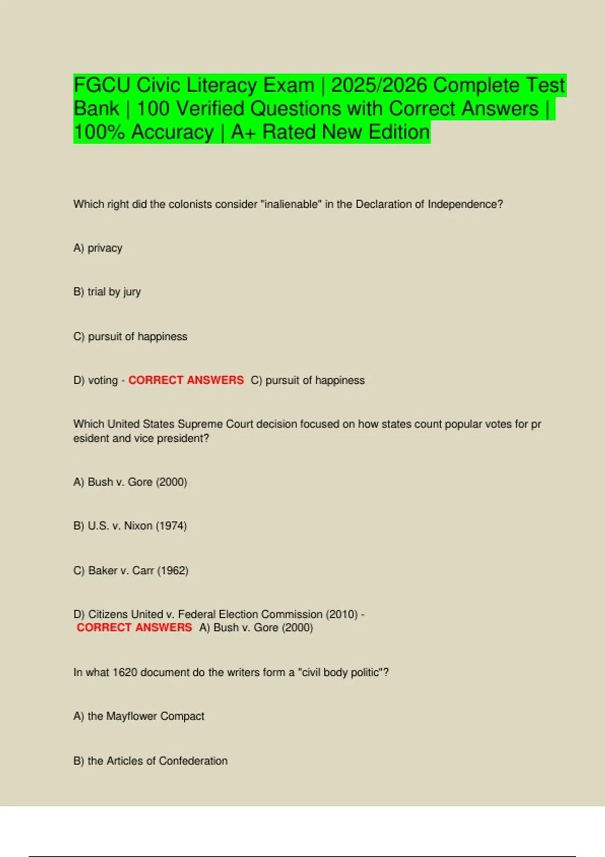 CORRECT ANSWERS A) Bush v. Gore (2000)