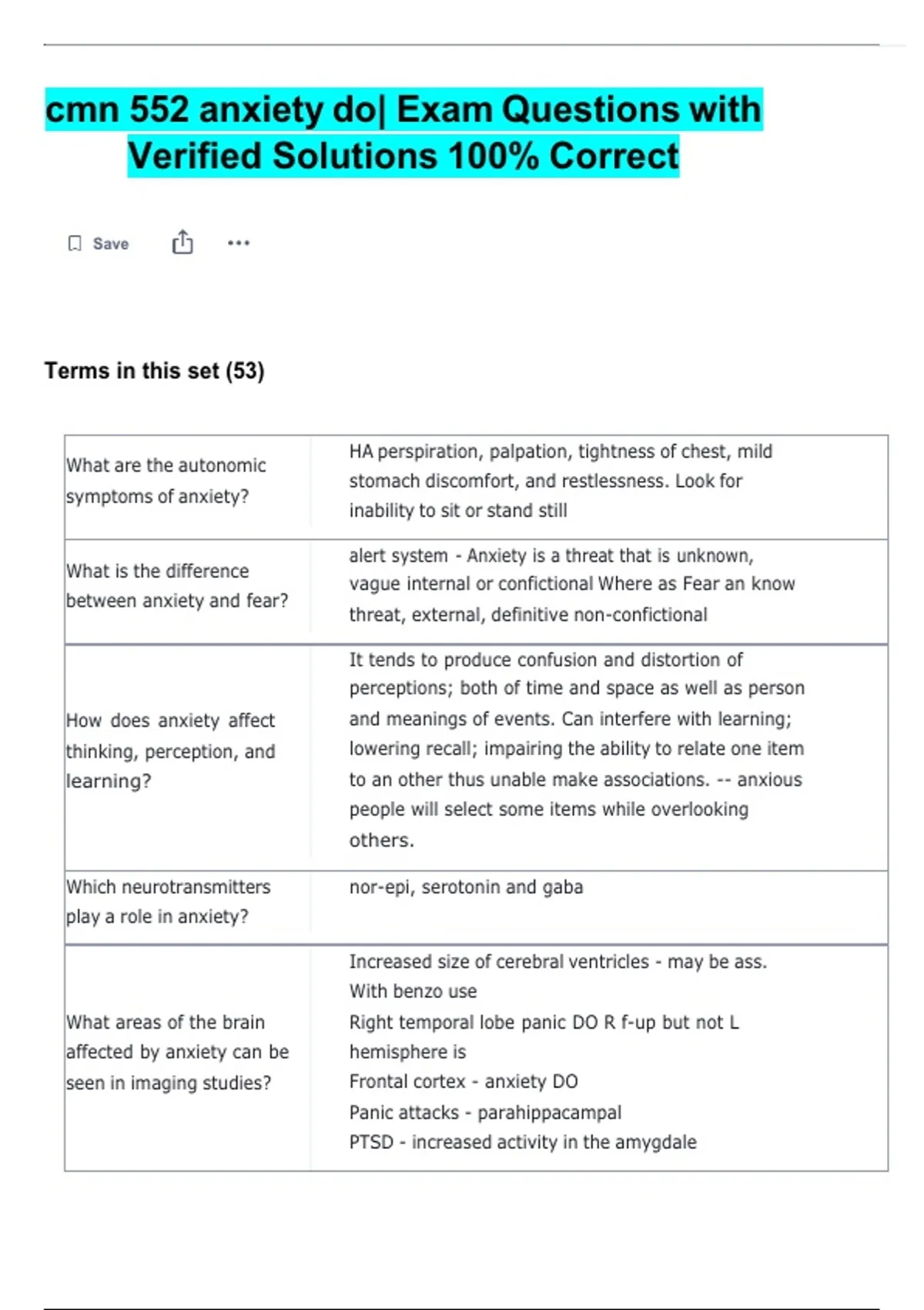 cmn 552 anxiety do| Exam Questions with Verified Solutions 100% Correct