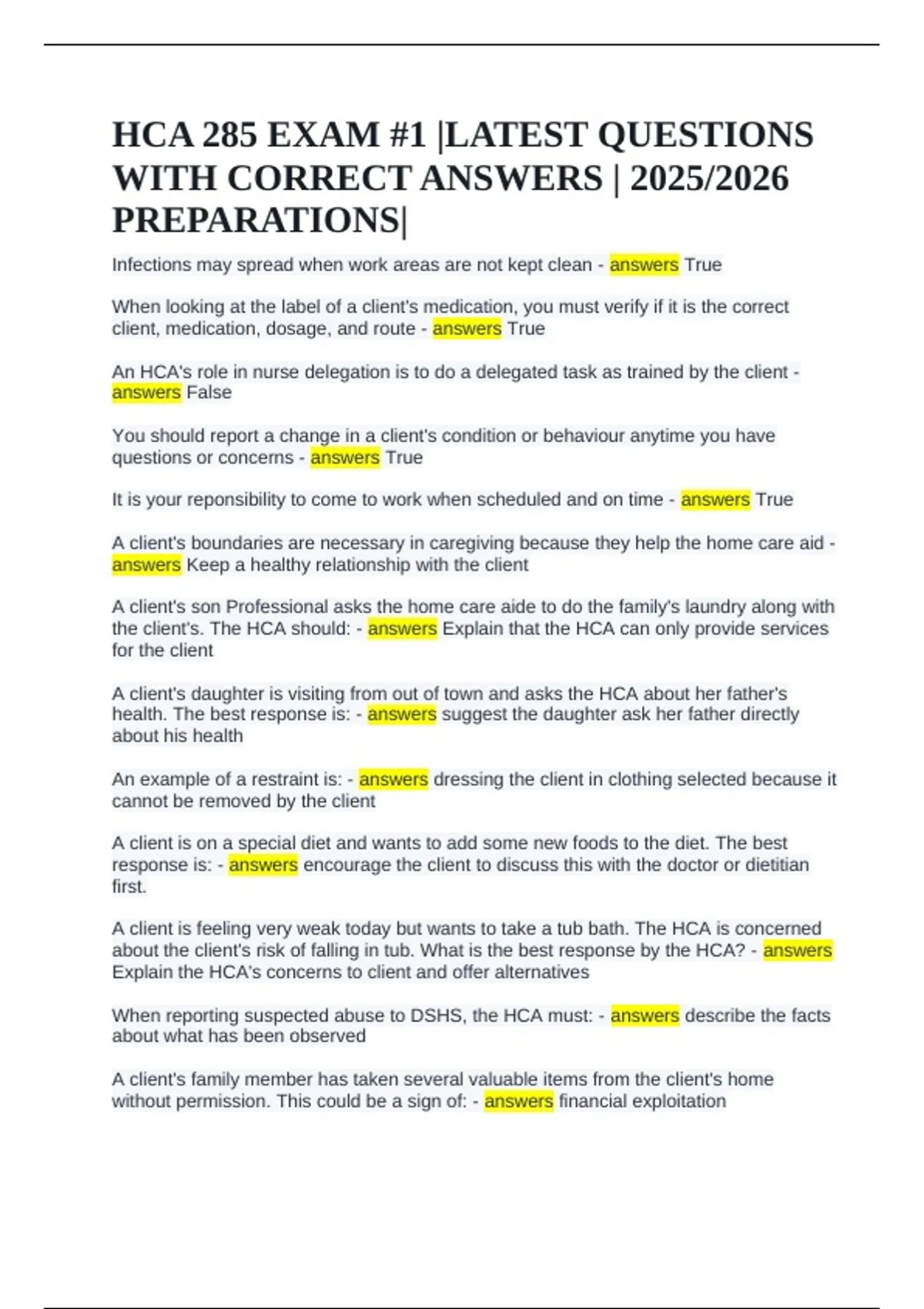 HCA 285 EXAM #1 |LATEST QUESTIONS WITH CORRECT ANSWERS | 2025/2026 PREPARATIONS|