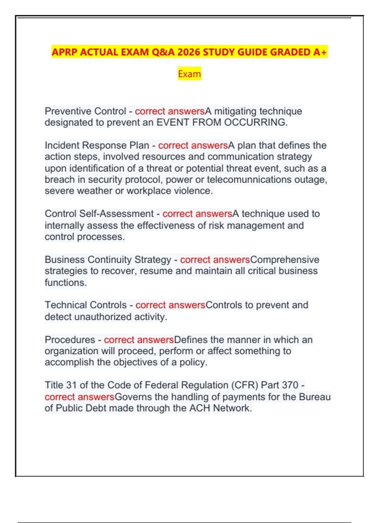 Preventive Control - correct answersA mitigating technique