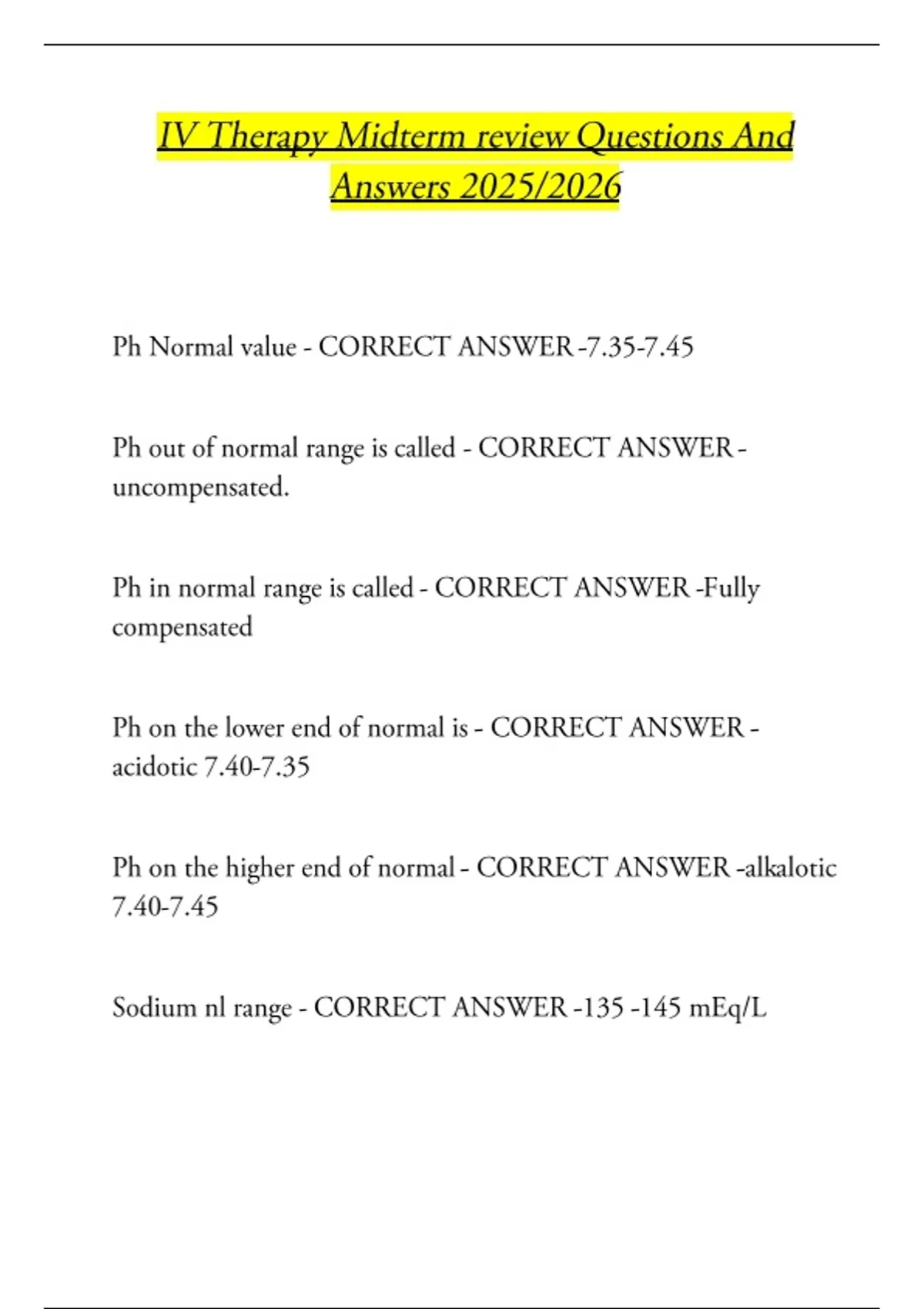 IV Therapy Midterm review Questions And Answers 2025/2026