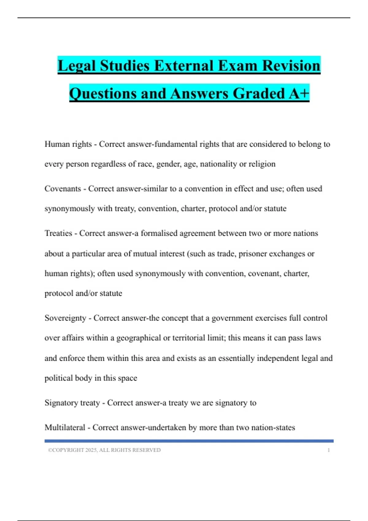 Treaties - Correct answer-a formalised agreement between two or more nations