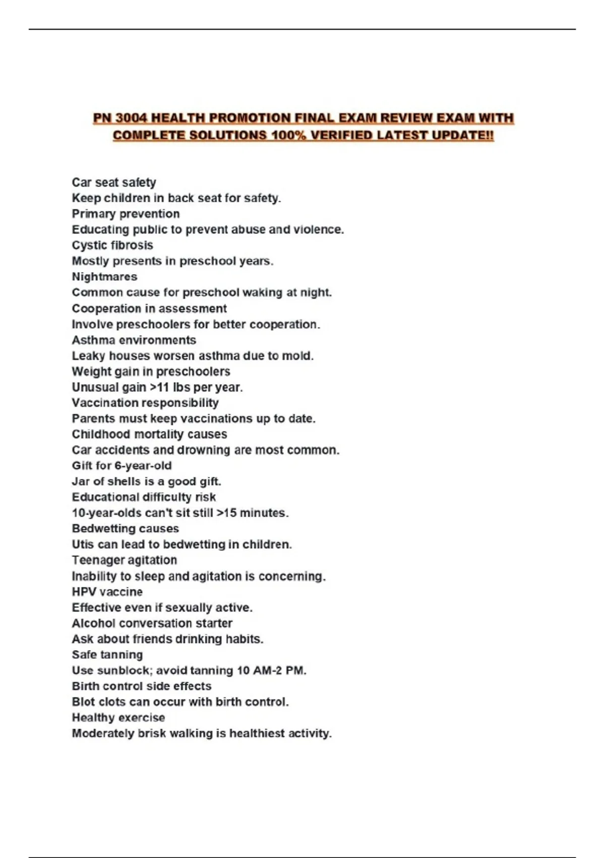 PN 3004 HEALTH PROMOTION FINAL EXAM REVIEW EXAM WITH COMPLETE SOLUTIONS 100% VERIFIED LATEST UPDATE!!...