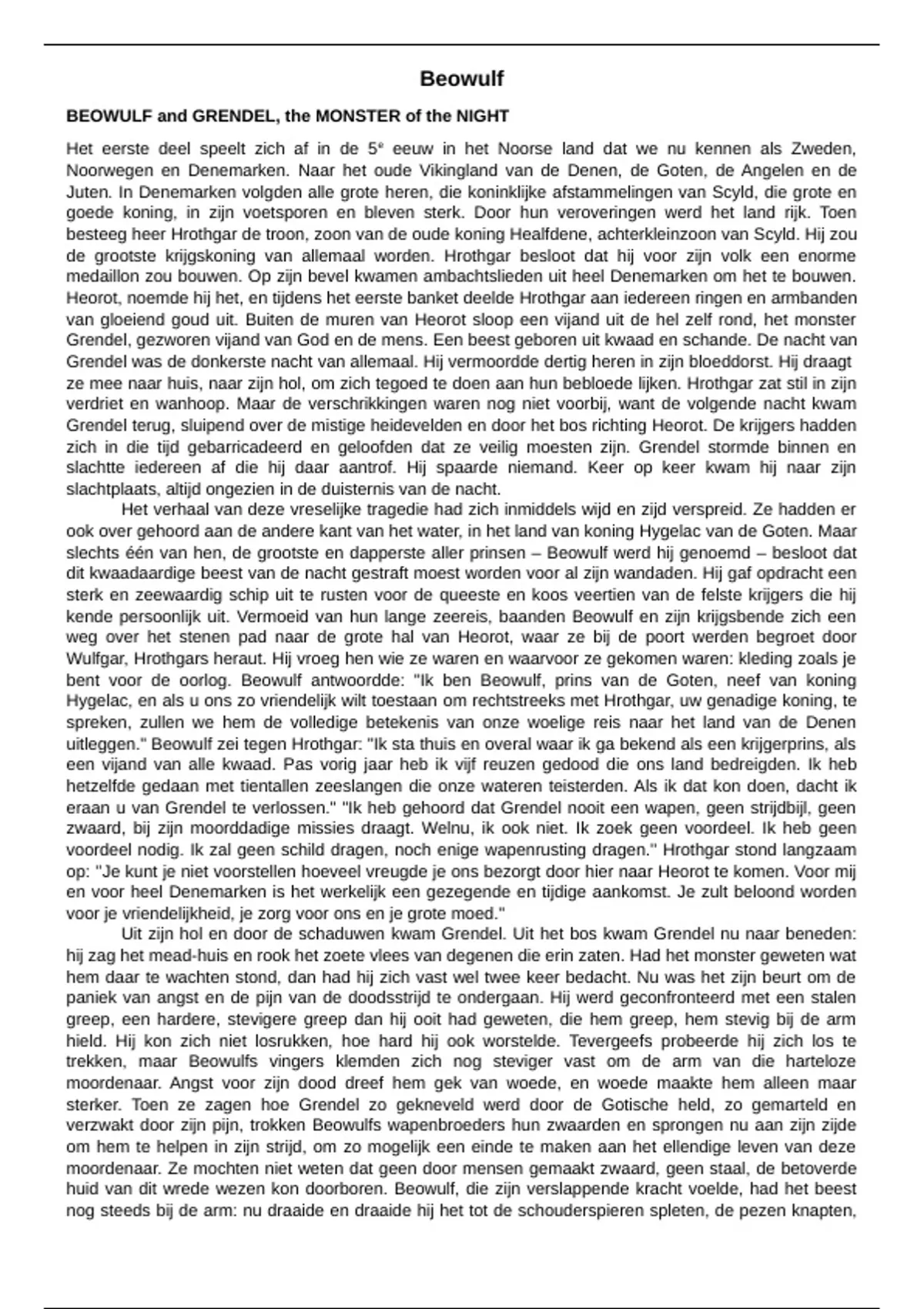 nemen met deze ene moord. Ondertussen was heel Heorot in rep en roer. Hrothgar riep om Beowulf. Als