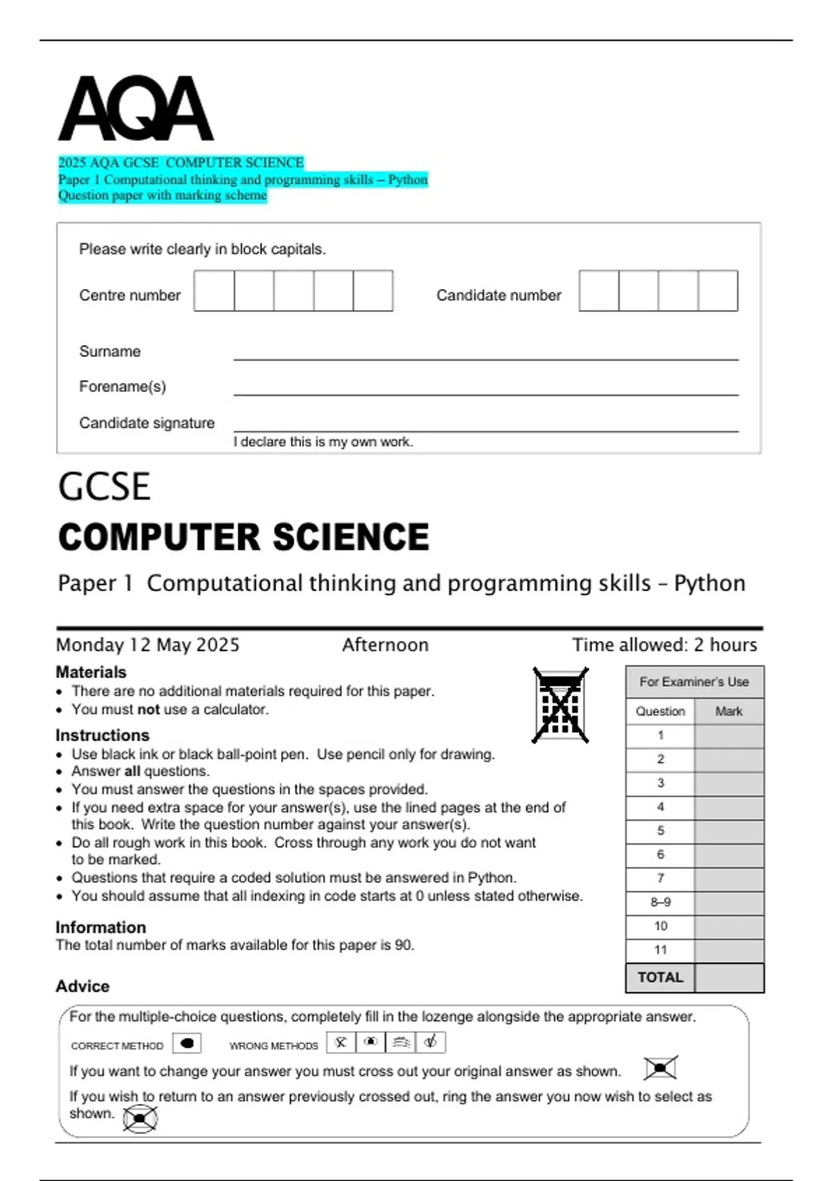 Monday 12 May 2025 Afternoon Time allowed: 2 hours