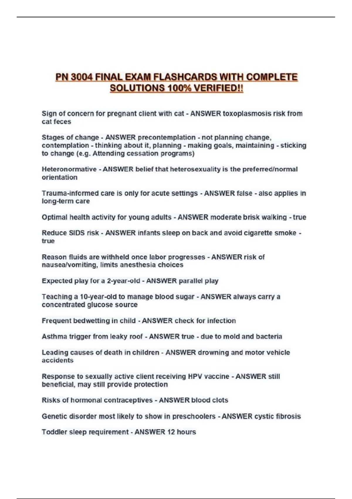 PN 3004 FINAL EXAM FLASHCARDS WITH COMPLETE SOLUTIONS 100% VERIFIED!!...