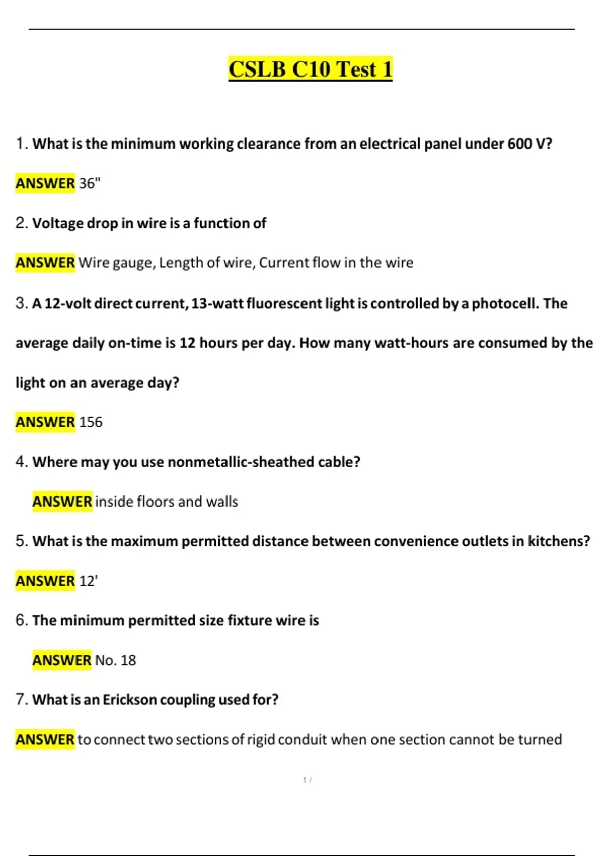 1. What is the minimum working clearance from an electrical panel under 600 V?