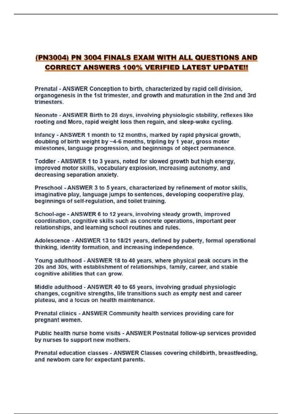 (PN3004) PN 3004 FINALS EXAM WITH ALL QUESTIONS AND CORRECT ANSWERS 100% VERIFIED LATEST UPDATE!!...