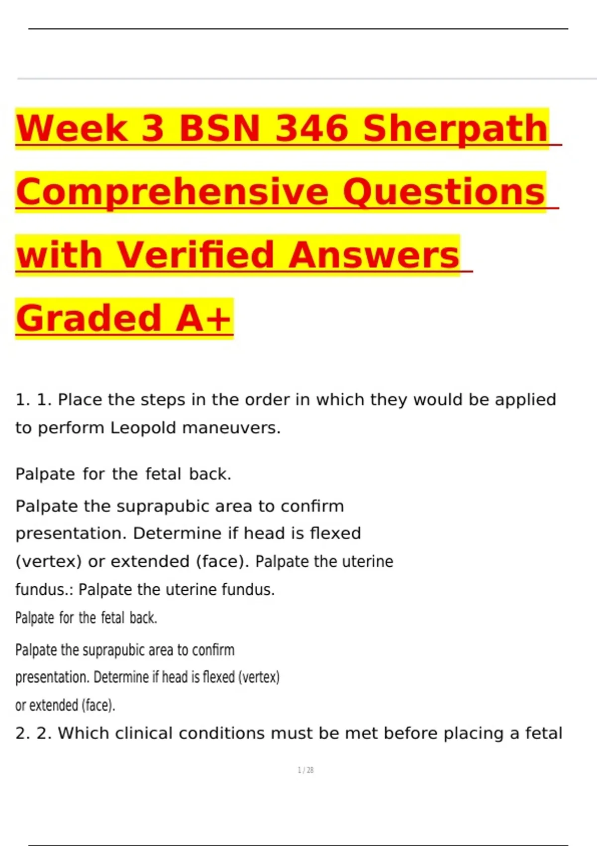 Week 3 BSN 346 Sherpath Comprehensive Questions with Verified Answers Graded A+
