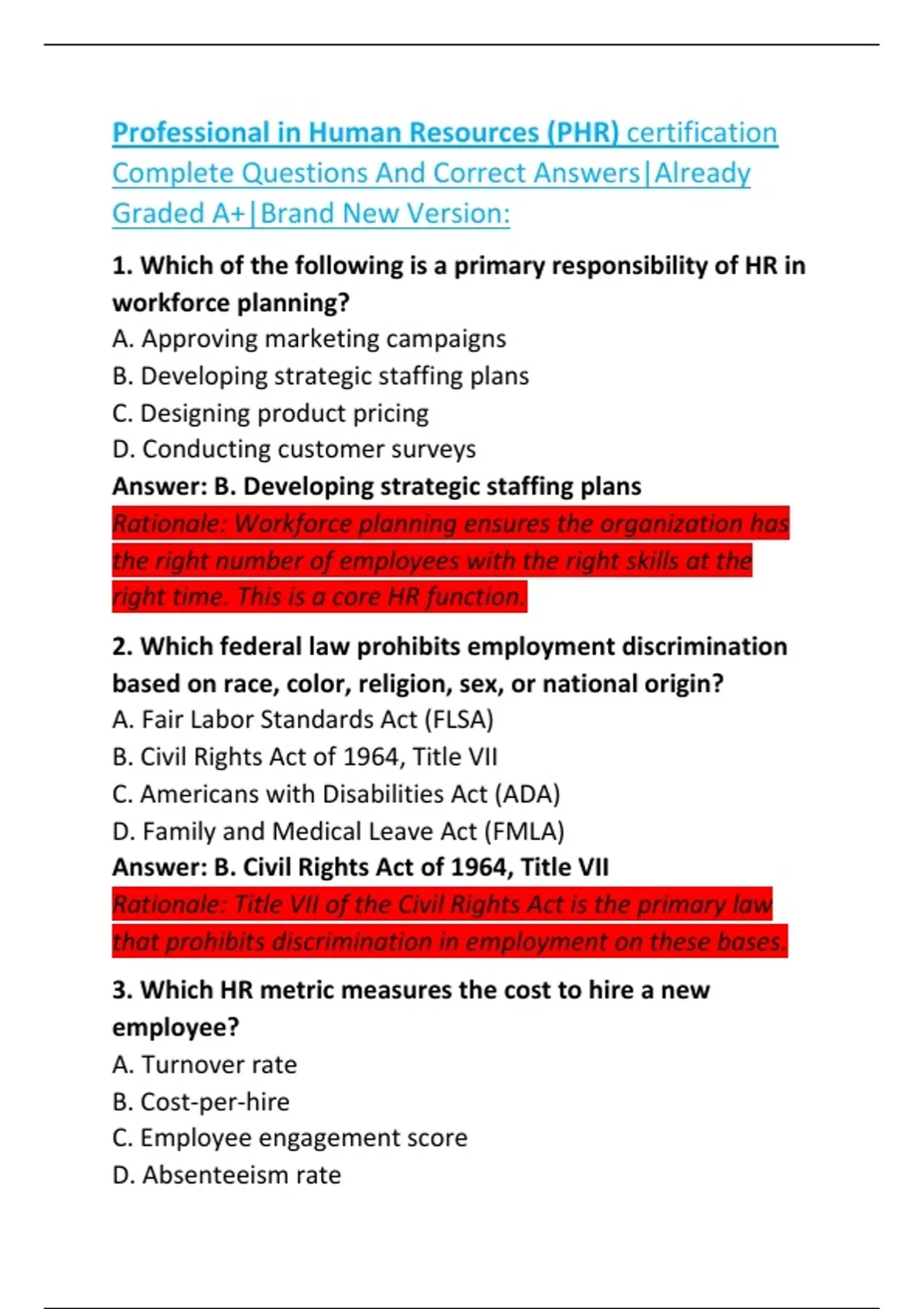 1. Which of the following is a primary responsibility of HR in