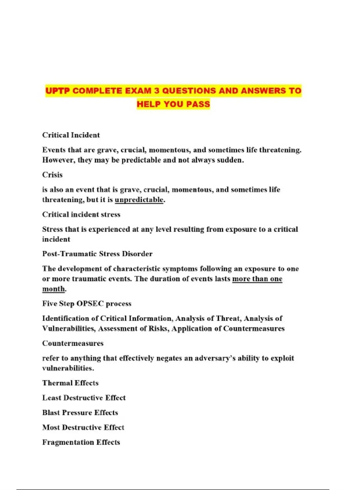 UPTP COMPLETE EXAM 3 QUESTIONS AND ANSWERS TO HELP YOU PASS....