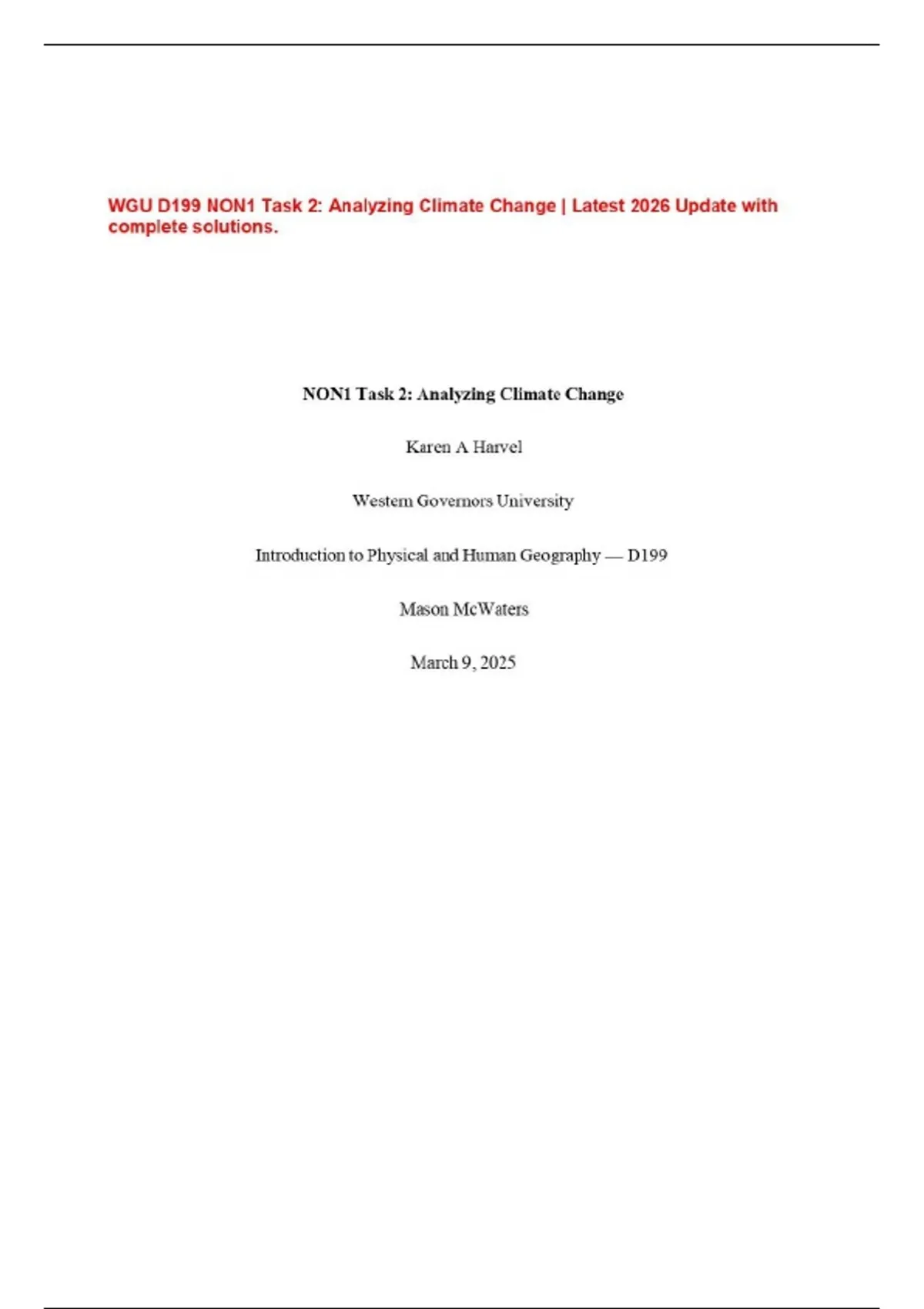 WGU D199 NON1 Task 2: Analyzing Climate Change | Latest 2026 Update with complete solutions.