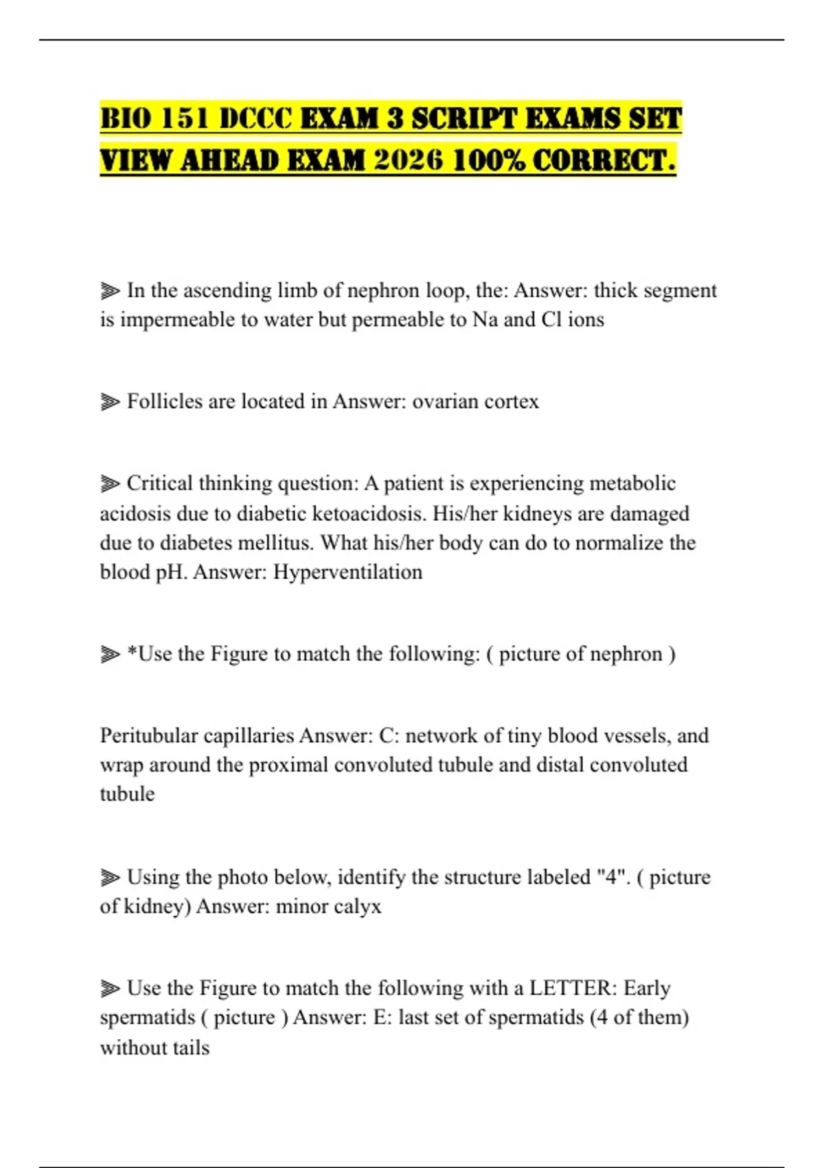 BIO 151 DCCC EXAM 3 SCRIPT EXAMS SET VIEW AHEAD EXAM 2026 100% CORRECT