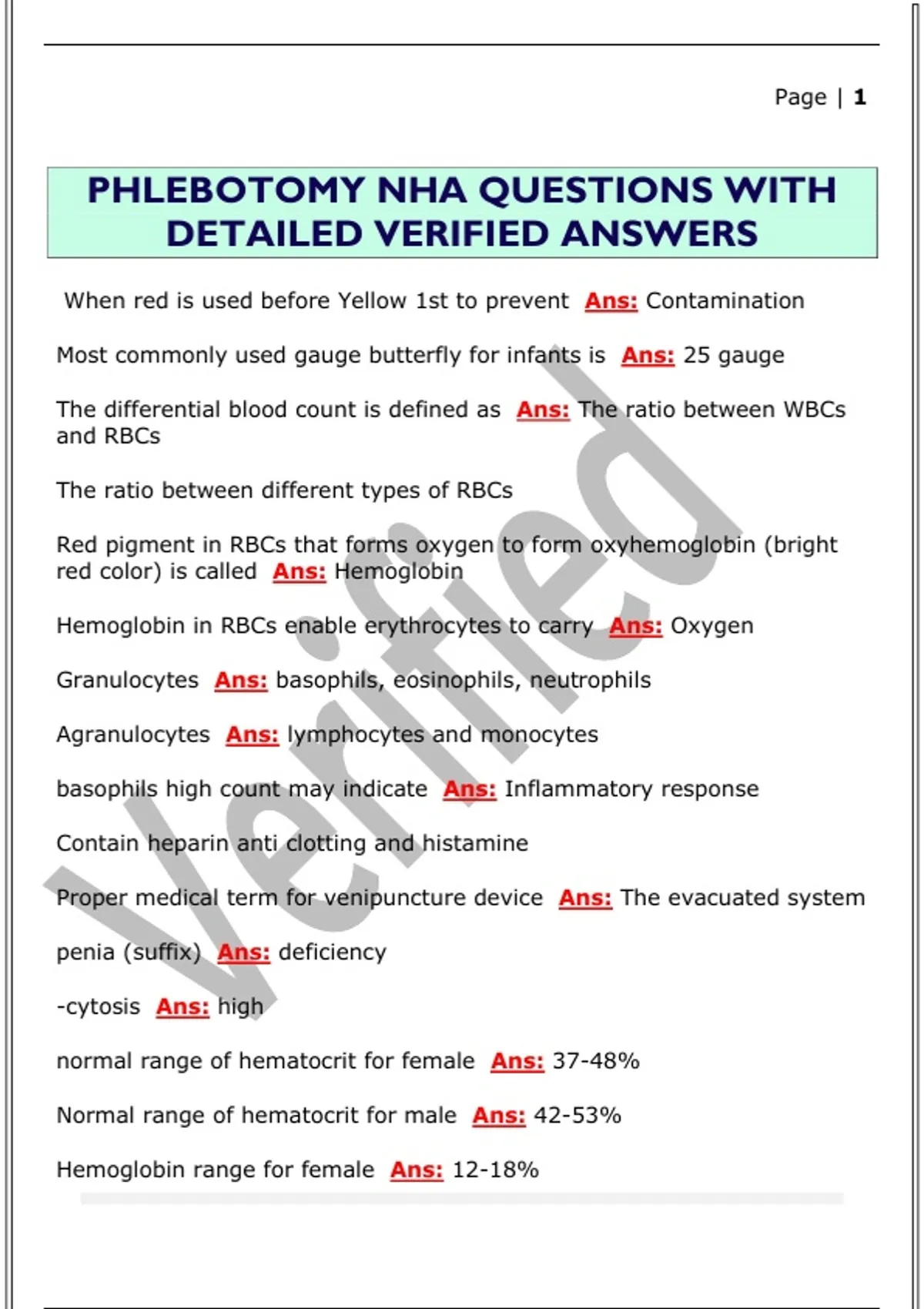 PHLEBOTOMY NHA QUESTIONS WITH DETAILED VERIFIED ANSWERS
