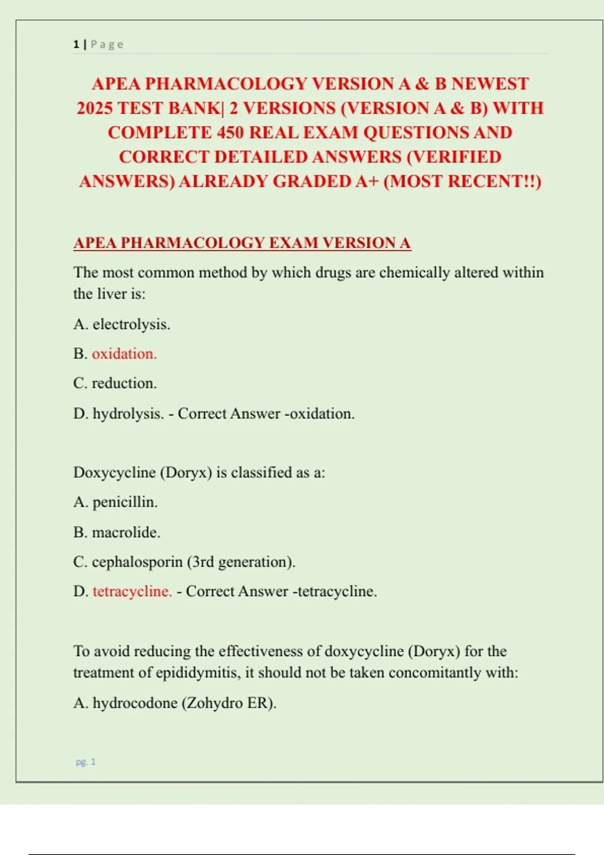 APEA PHARMACOLOGY VERSION A & B NEWEST