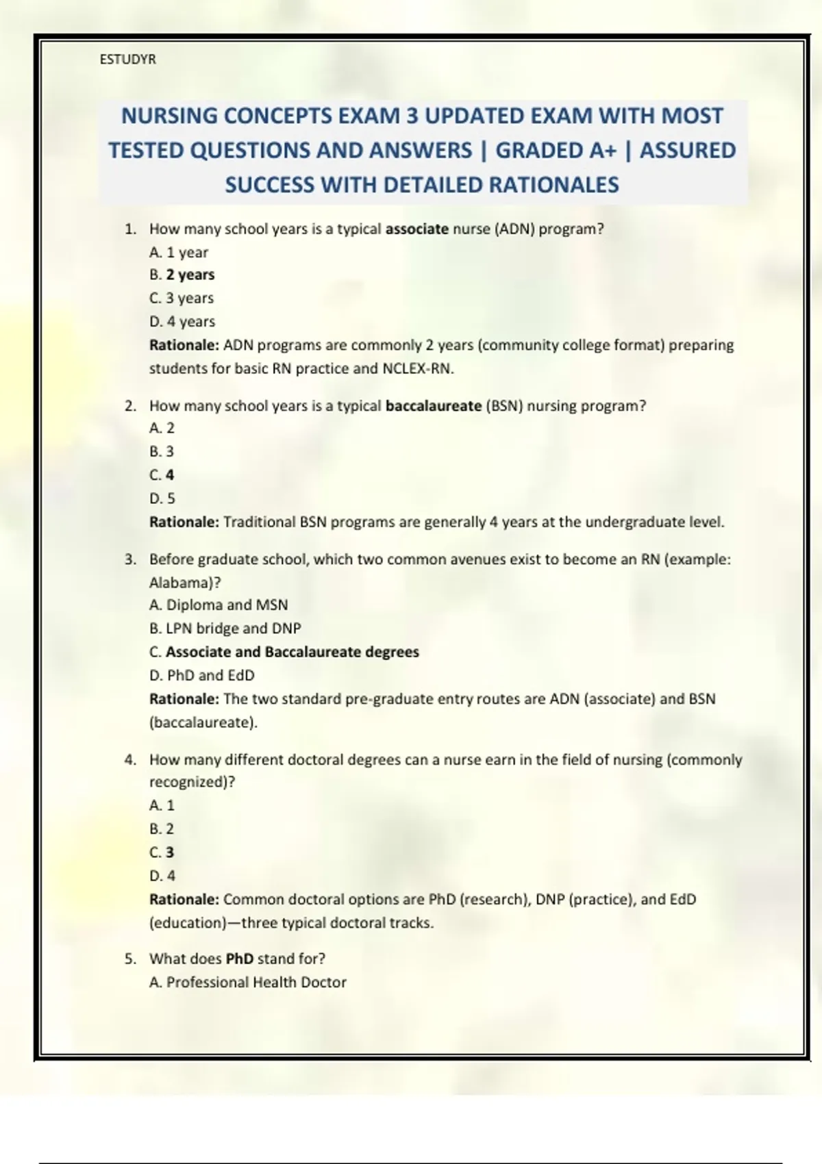 NURSING CONCEPTS EXAM 3 UPDATED EXAM WITH MOST TESTED QUESTIONS AND ANSWERS | GRADED A+ | ASSURED SUCCESS WITH DETAILED RATIONALES