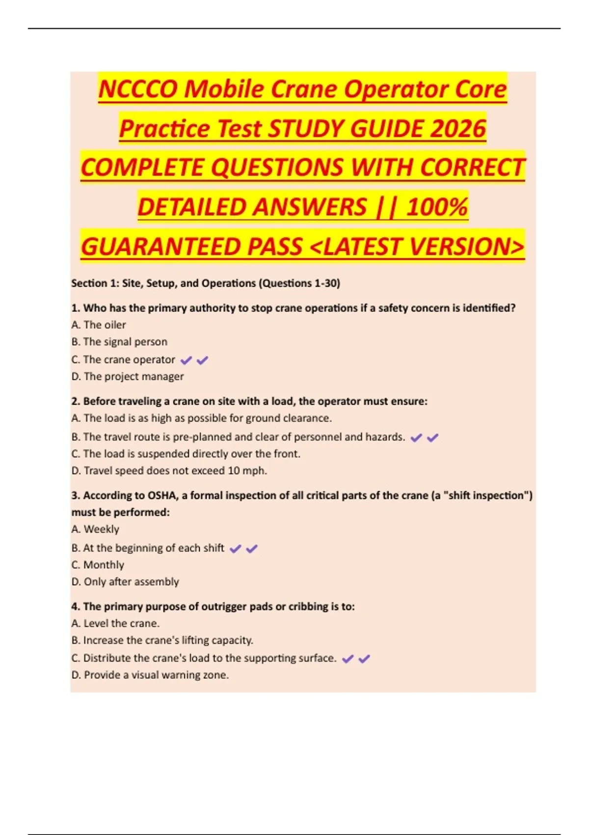 2. Before traveling a crane on site with a load, the operator must ensure: