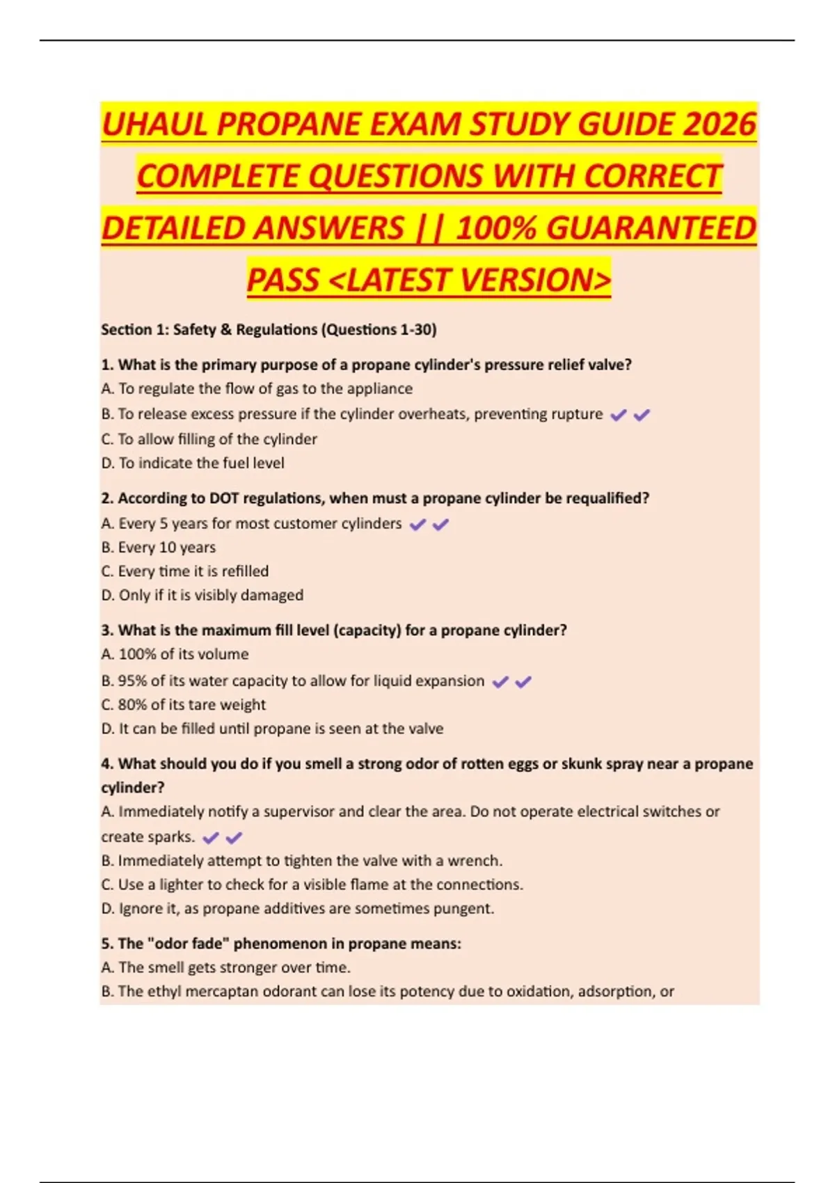 UHAUL PROPANE EXAM STUDY GUIDE 2026 COMPLETE QUESTIONS WITH CORRECT DETAILED ANSWERS || 100% GUARANTEED PASS &lt;LATEST VERSION