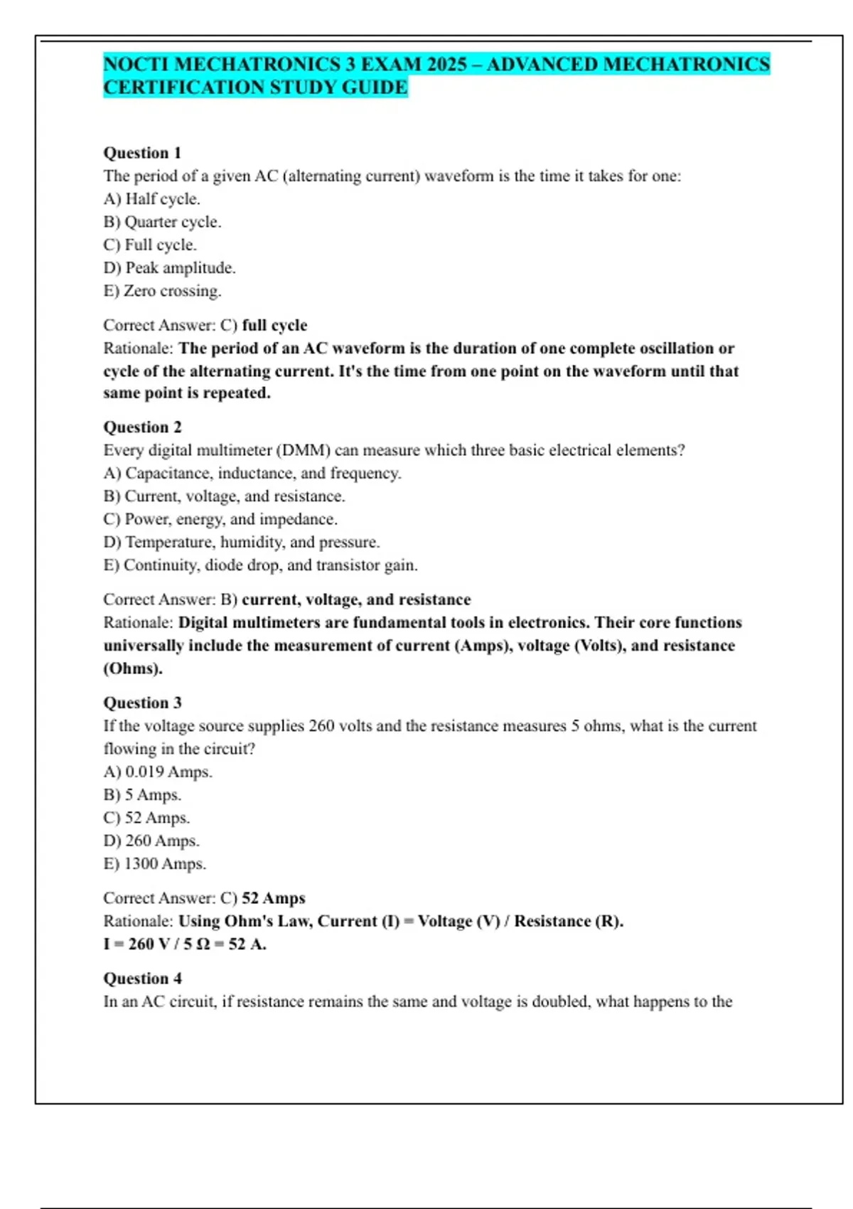 NOCTI MECHATRONICS 3 EXAM 2025 – ADVANCED MECHATRONICS