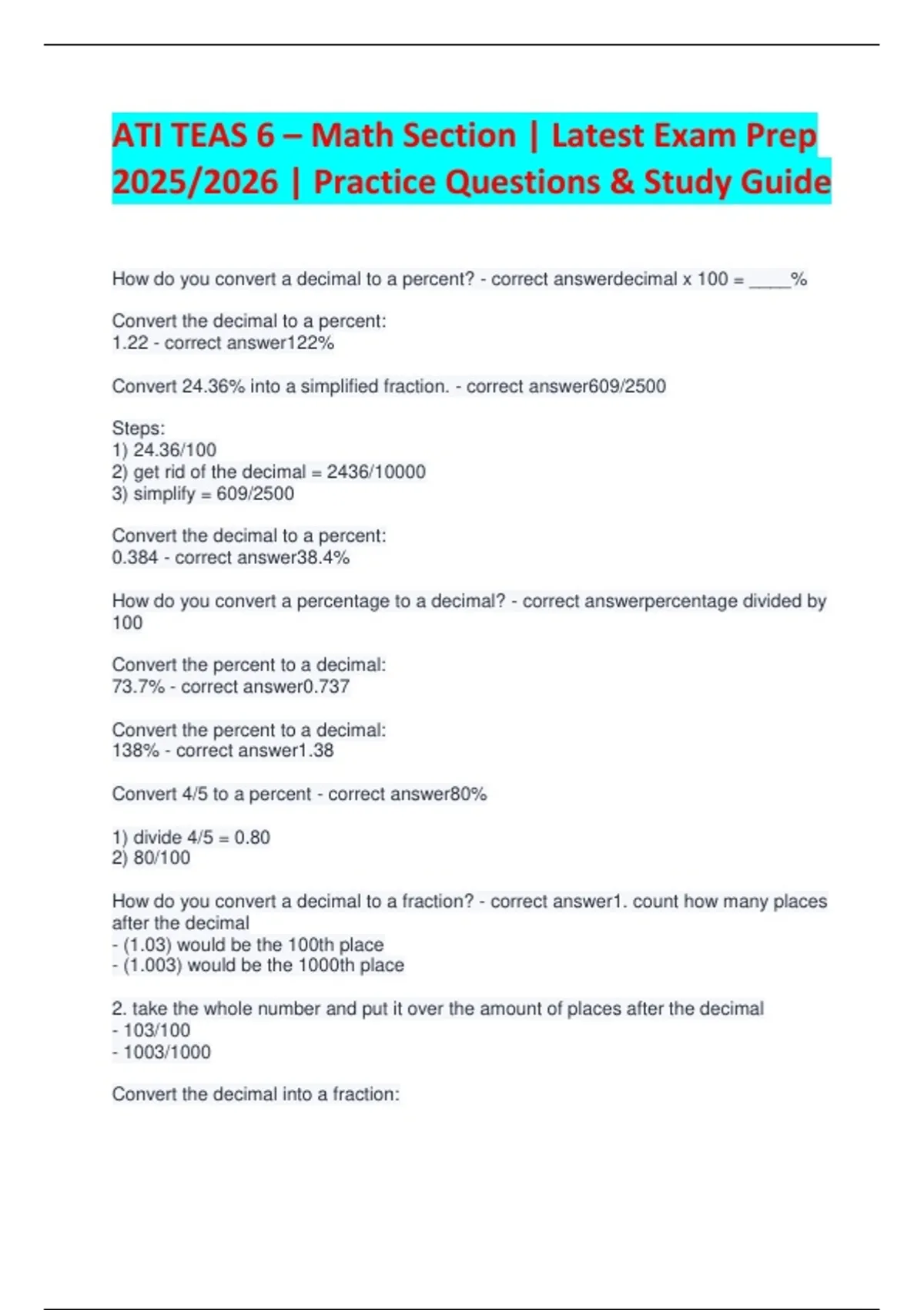 ATI TEAS 6 – Math Section | Latest Exam Prep 2025/2026 | Practice Questions & Study Guide