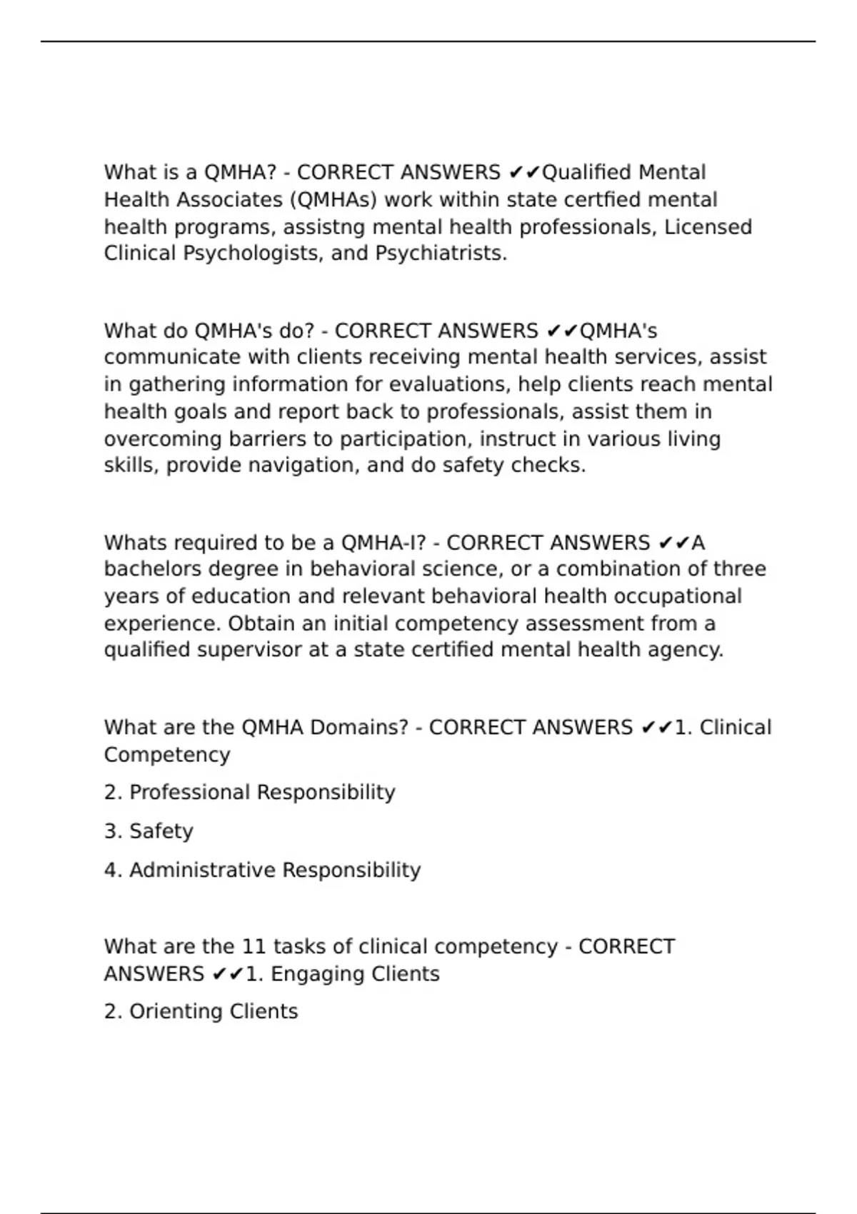 What is a QMHA? - CORRECT ANSWERS ✔✔Qualified Mental