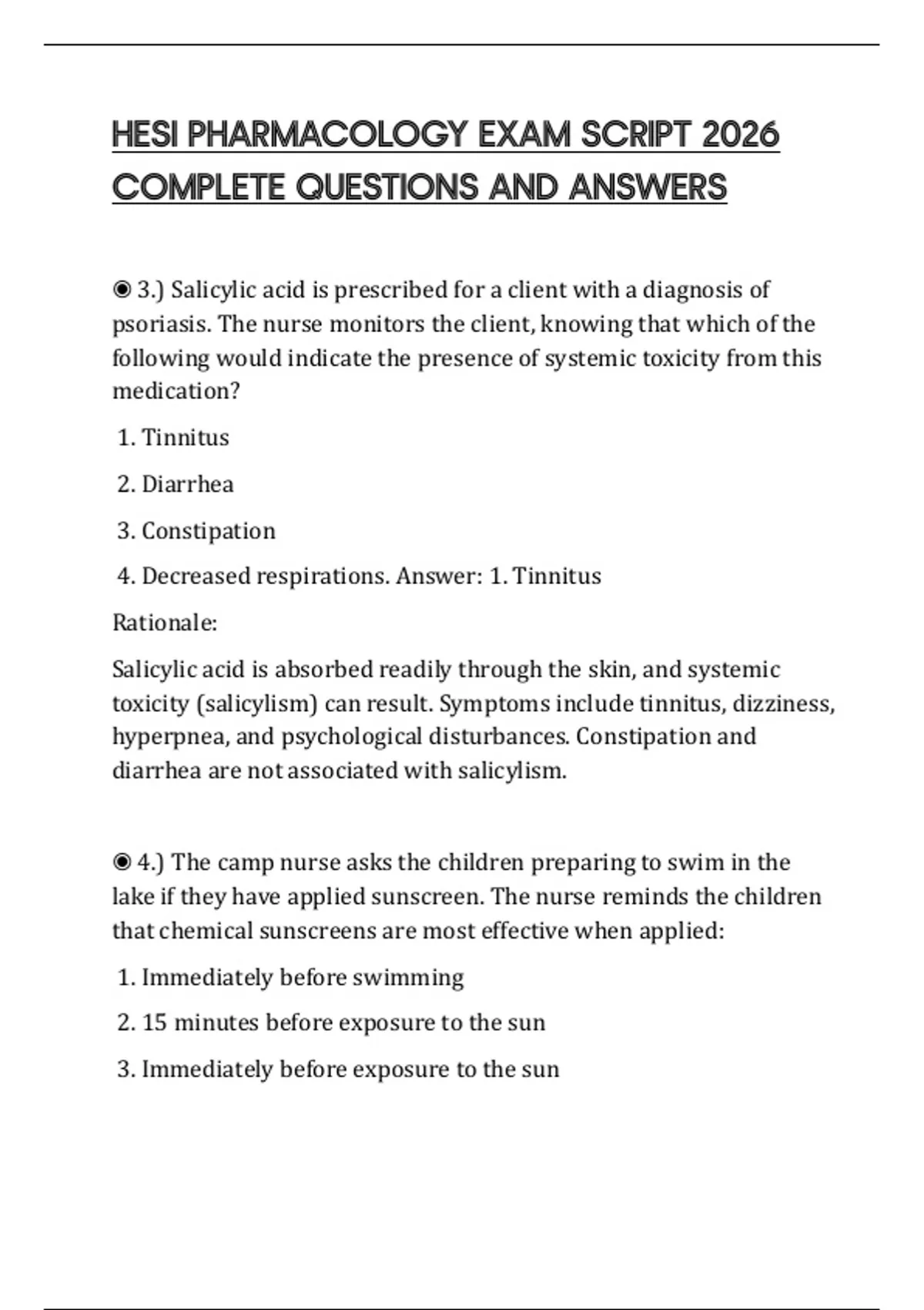 ◉ 3.) Salicylic acid is prescribed for a client with a diagnosis of