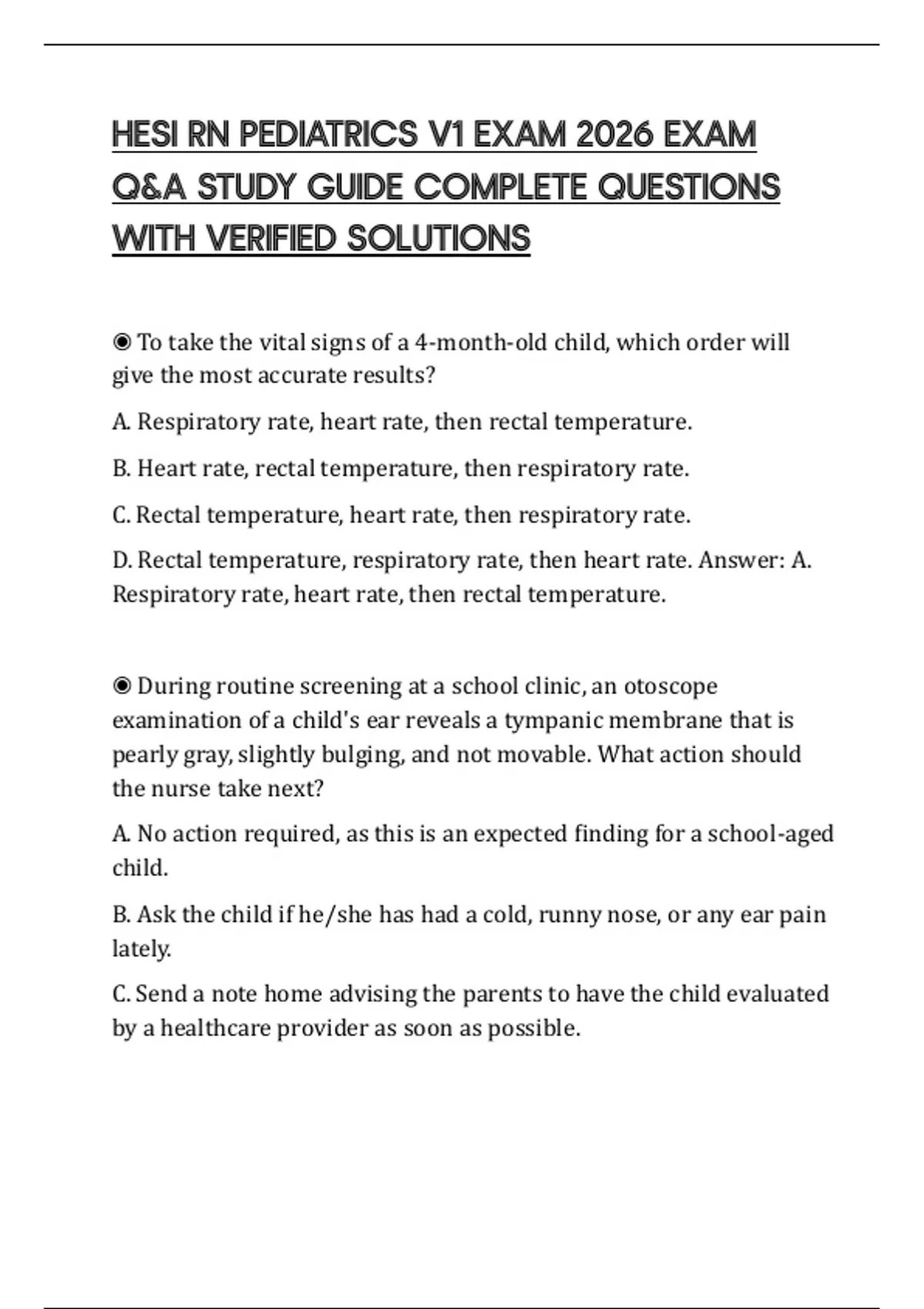 ◉ To take the vital signs of a 4-month-old child, which order will