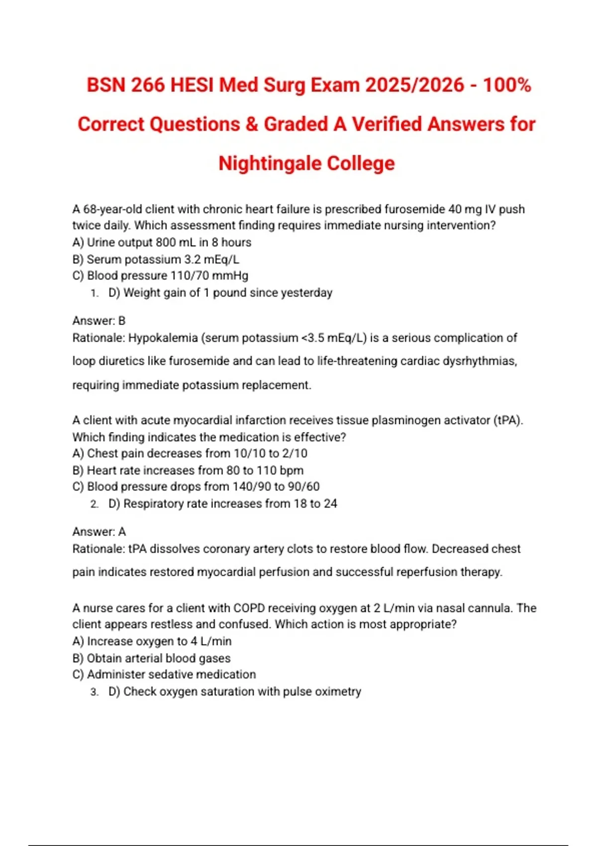 BSN 266 HESI Med Surg Exam 2025/2026 - 100%