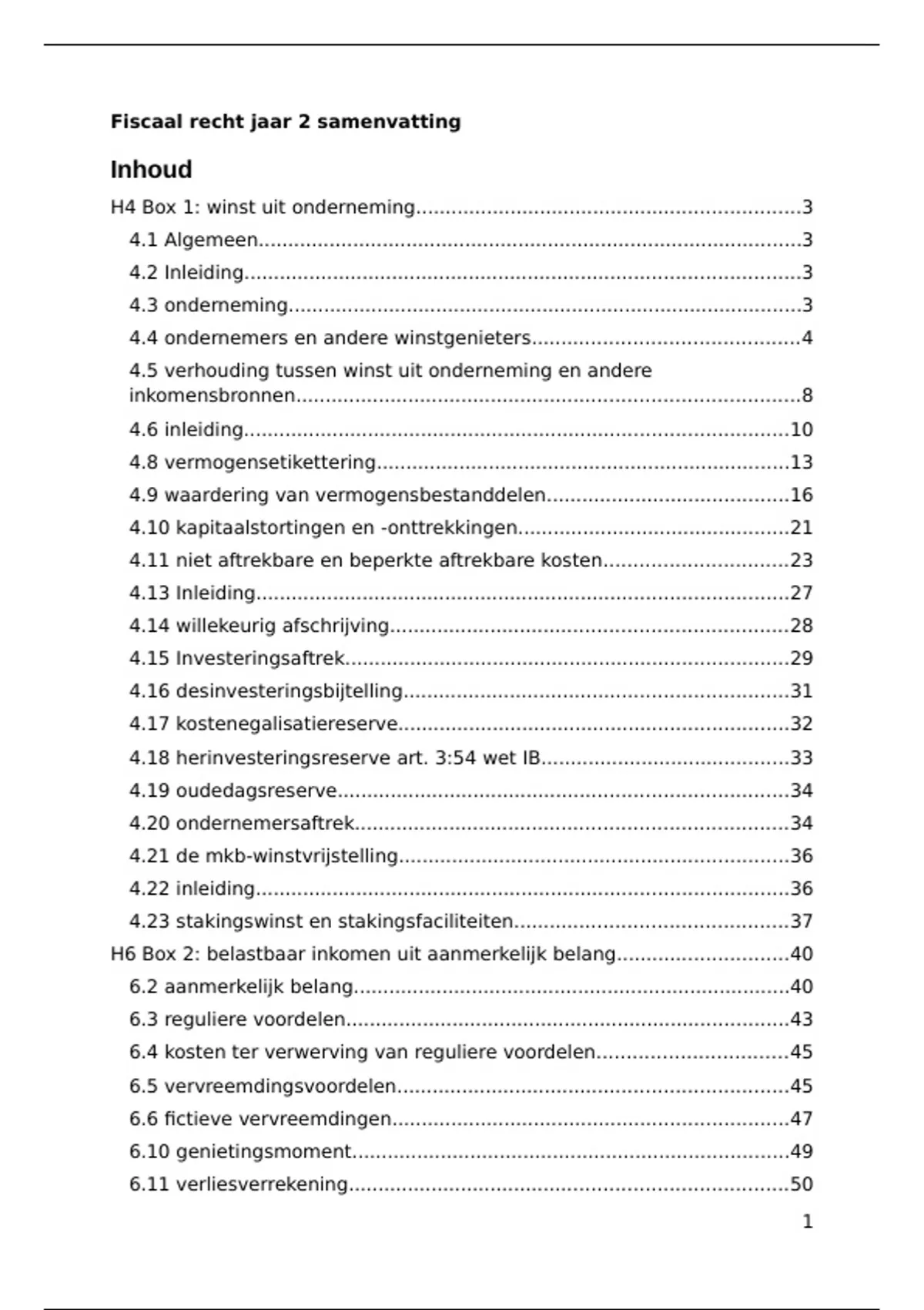 fiscaalrecht samenvatting alle info jaar 2. h4 van paragraaf 4.1 tot 4.23. h6 alles H5.4 H9 9.1 tot 9.9