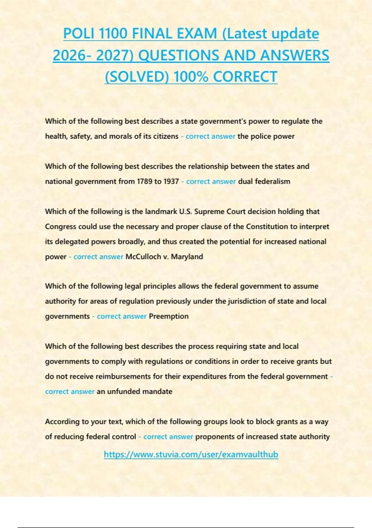 POLI 1100 FINAL EXAM (Latest update ) QUESTIONS AND ANSWERS (SOLVED) 100% CORRECT
