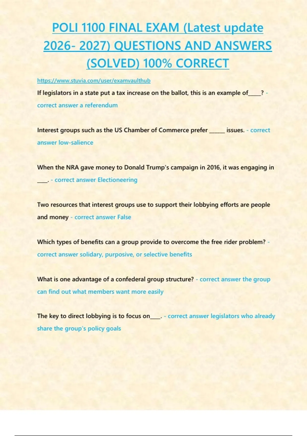 POLI 1100 FINAL EXAM (Latest update ) QUESTIONS AND ANSWERS (SOLVED) 100% CORREC