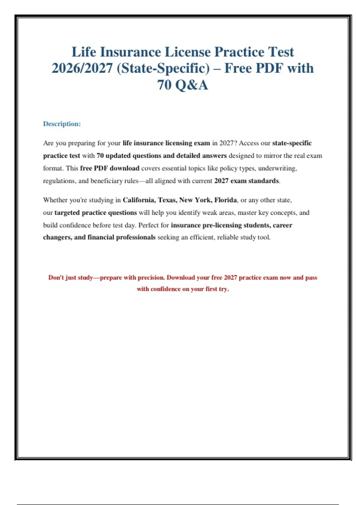 , Life Insurance Practice Exam 2026/2027: Free PDF Questions &