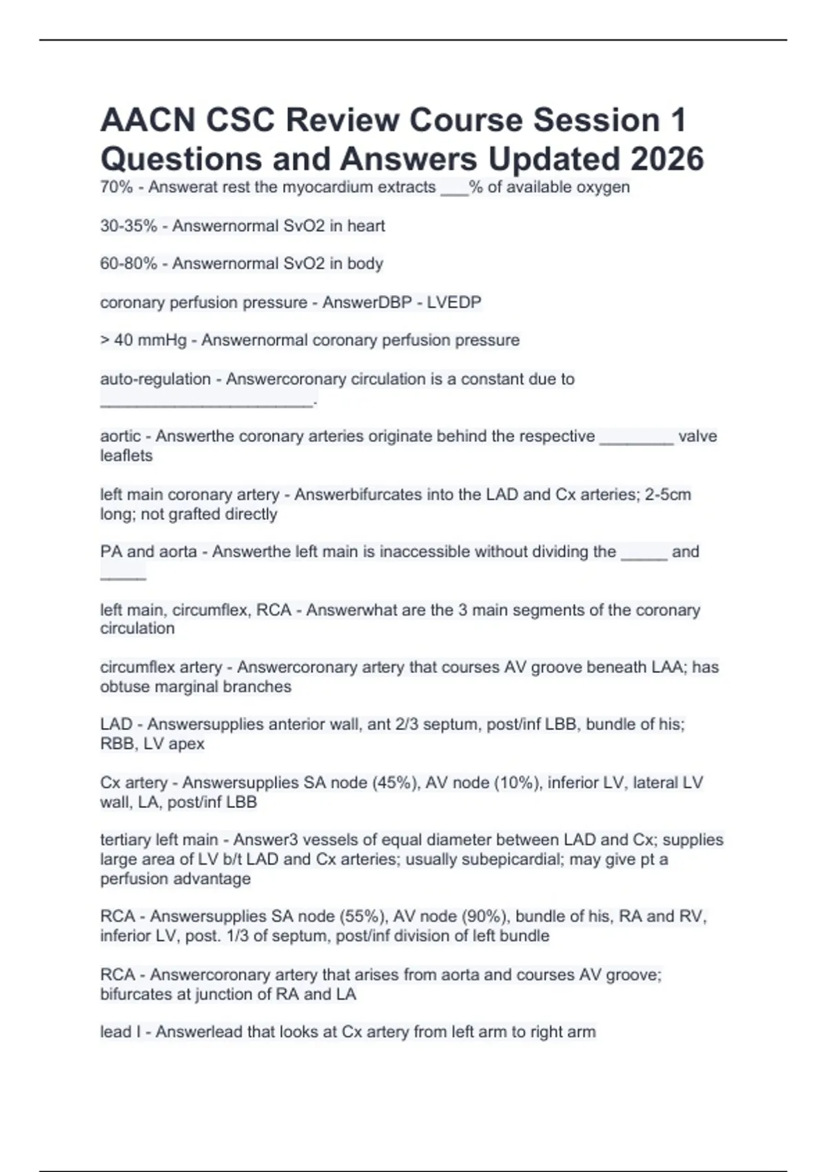 AACN CSC Review Course Session 1 Questions and Answers Updated 2026