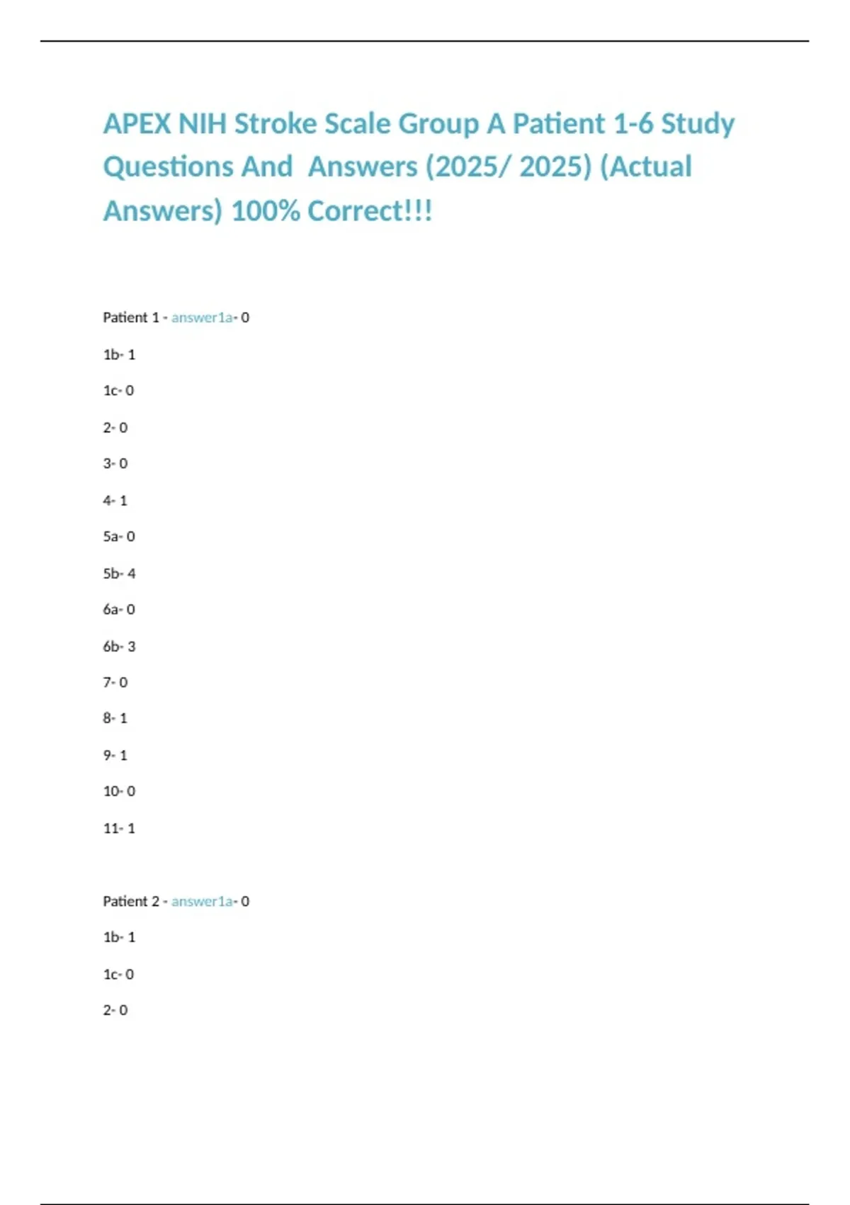 APEX NIH Stroke Scale Group A Patient 1-6 Study