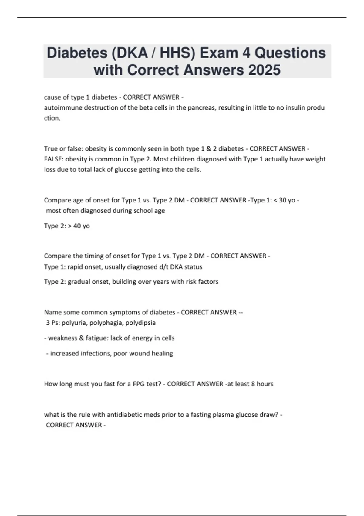 Compare age of onset for Type 1 vs. Type 2 DM - CORRECT ANSWER -Type 1: < 30 yo -