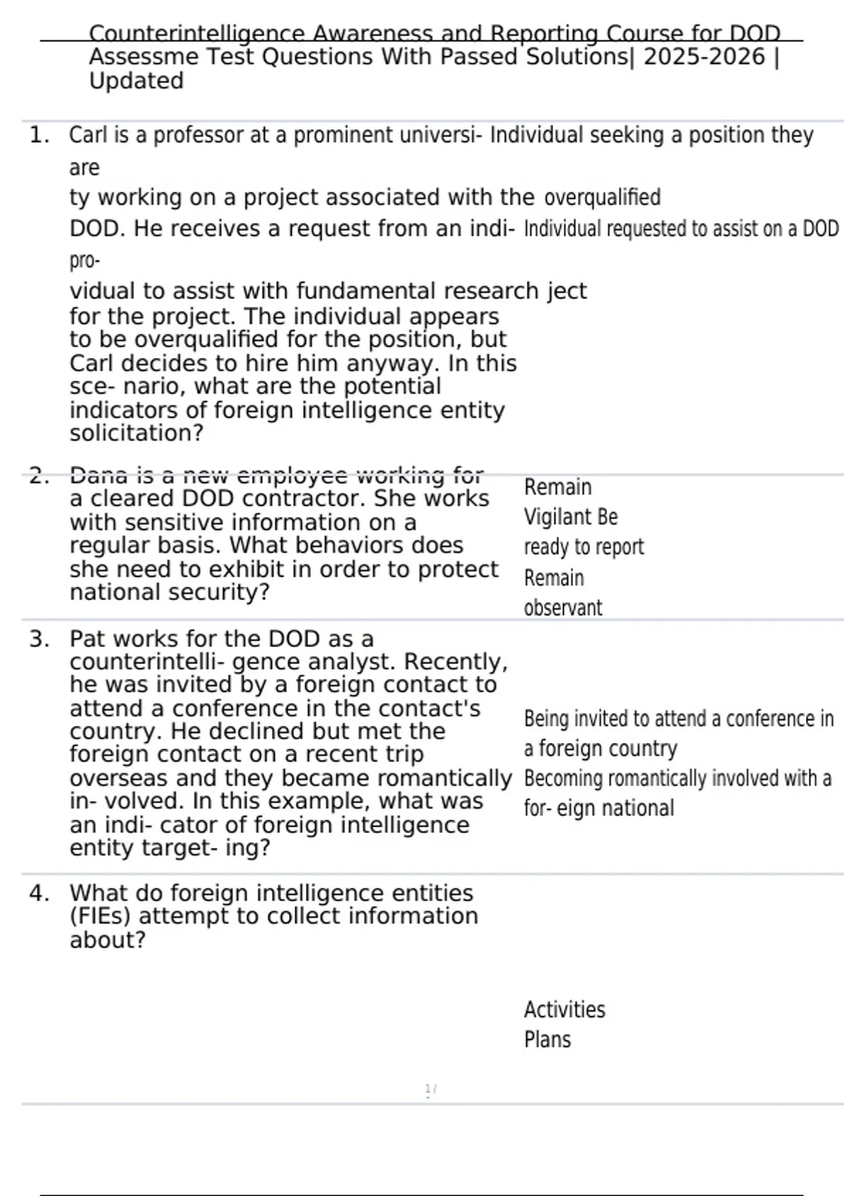 , Counterintelligence Awareness and Reporting Course for DOD