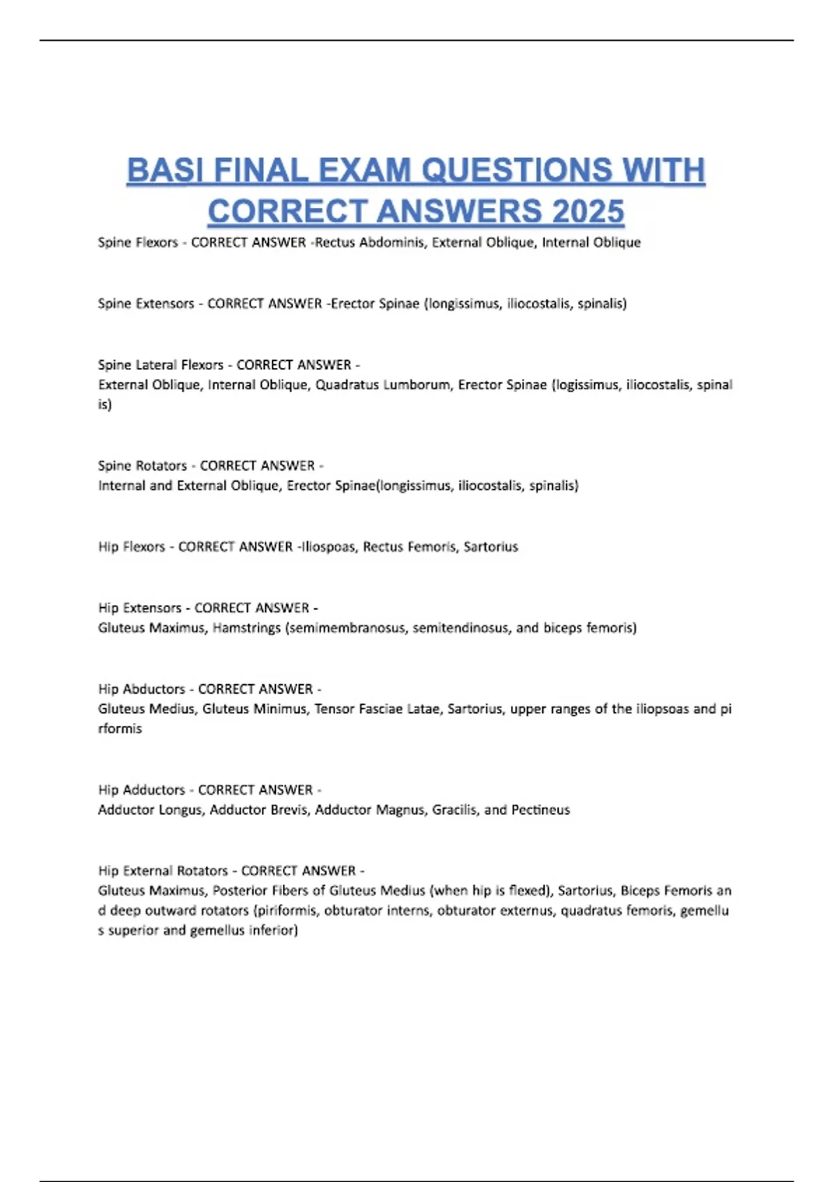 BASI FINAL EXAM QUESTIONS WITH CORRECT ANSWERS