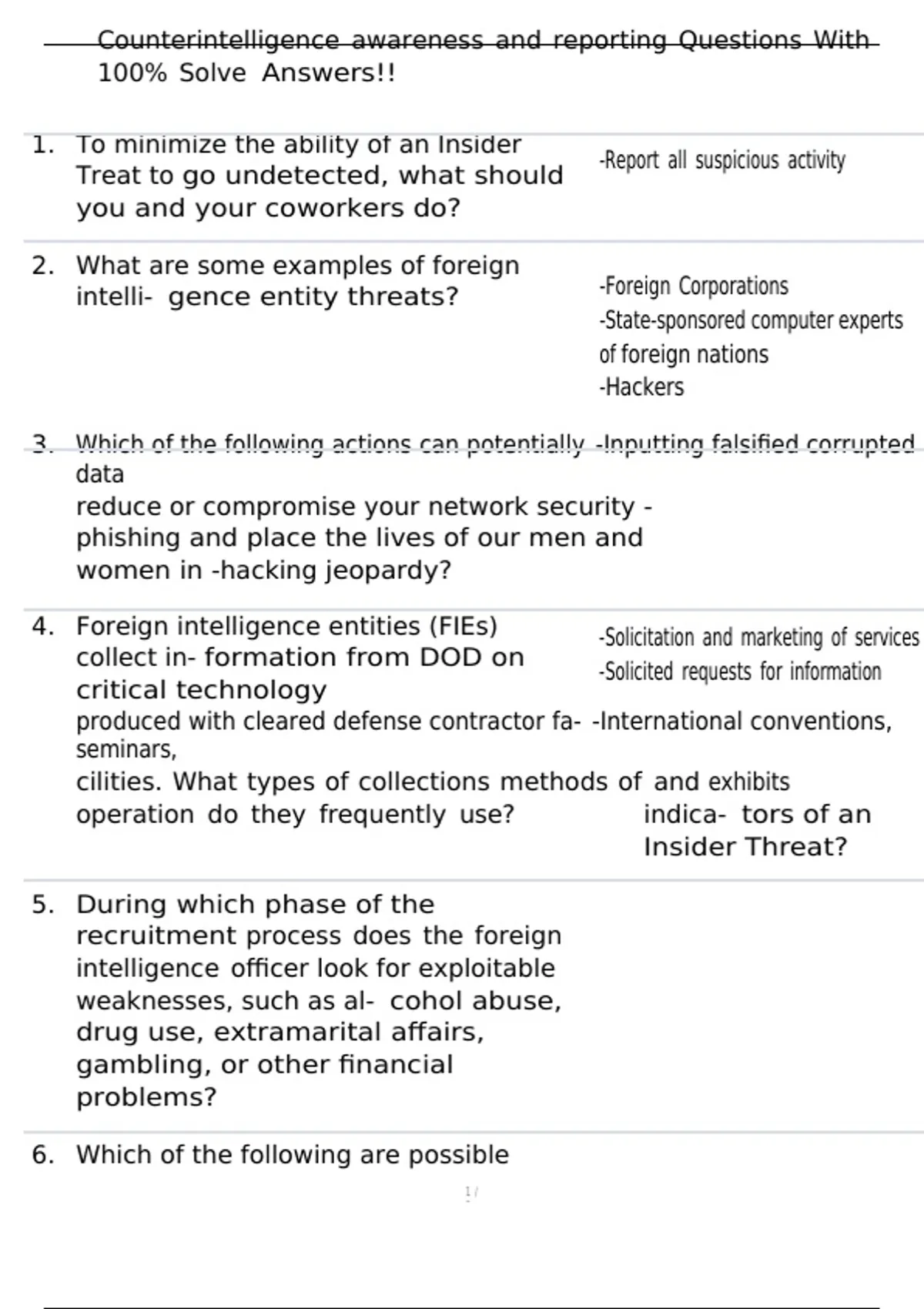 Counterintelligence awareness and reporting Questions With 100% SolvedAnswers!!