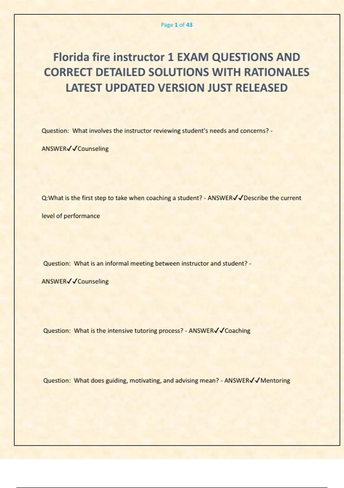 Florida fire instructor 1 EXAM QUESTIONS AND