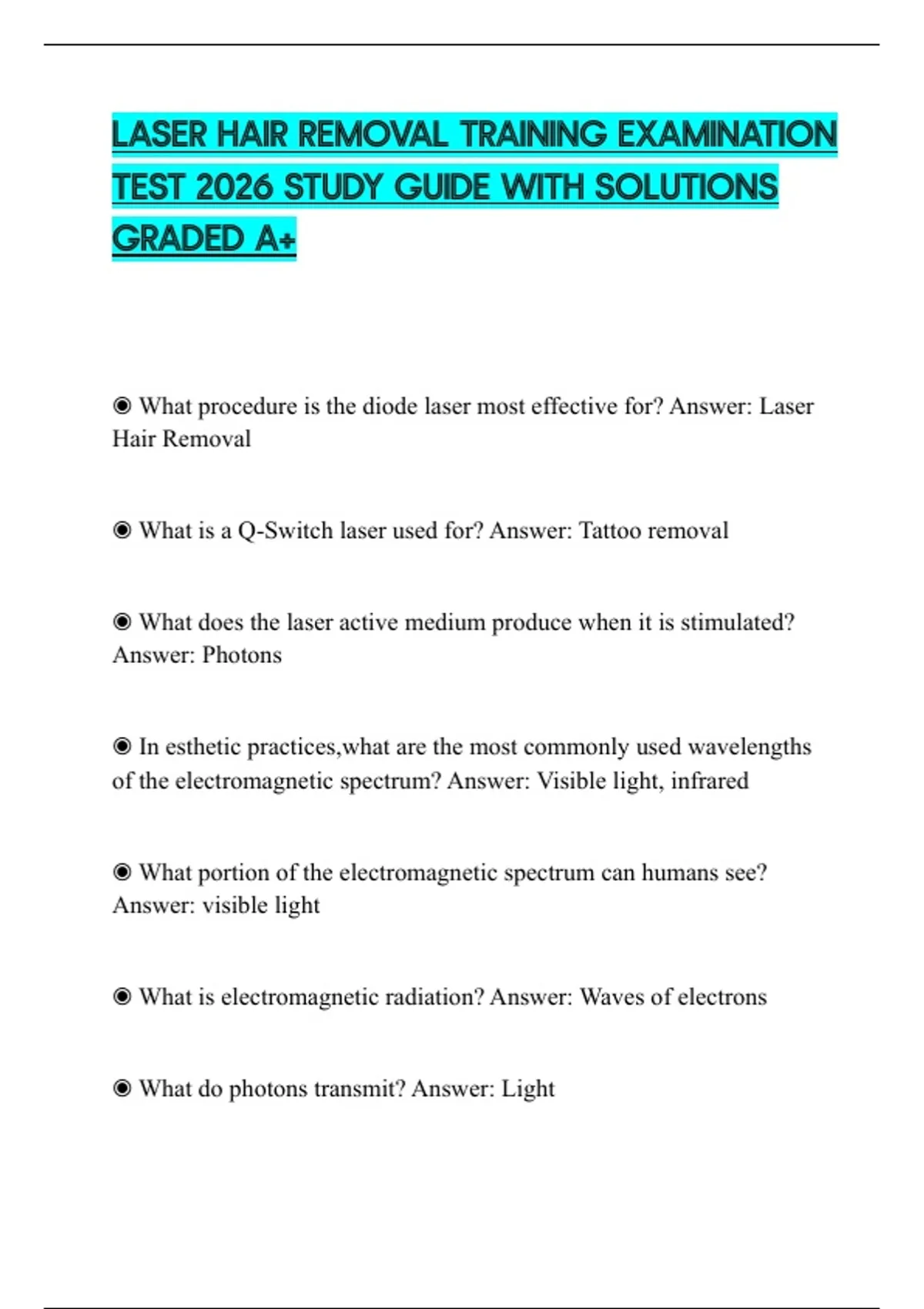 ◉ What is a Q-Switch laser used for? Answer: Tattoo removal