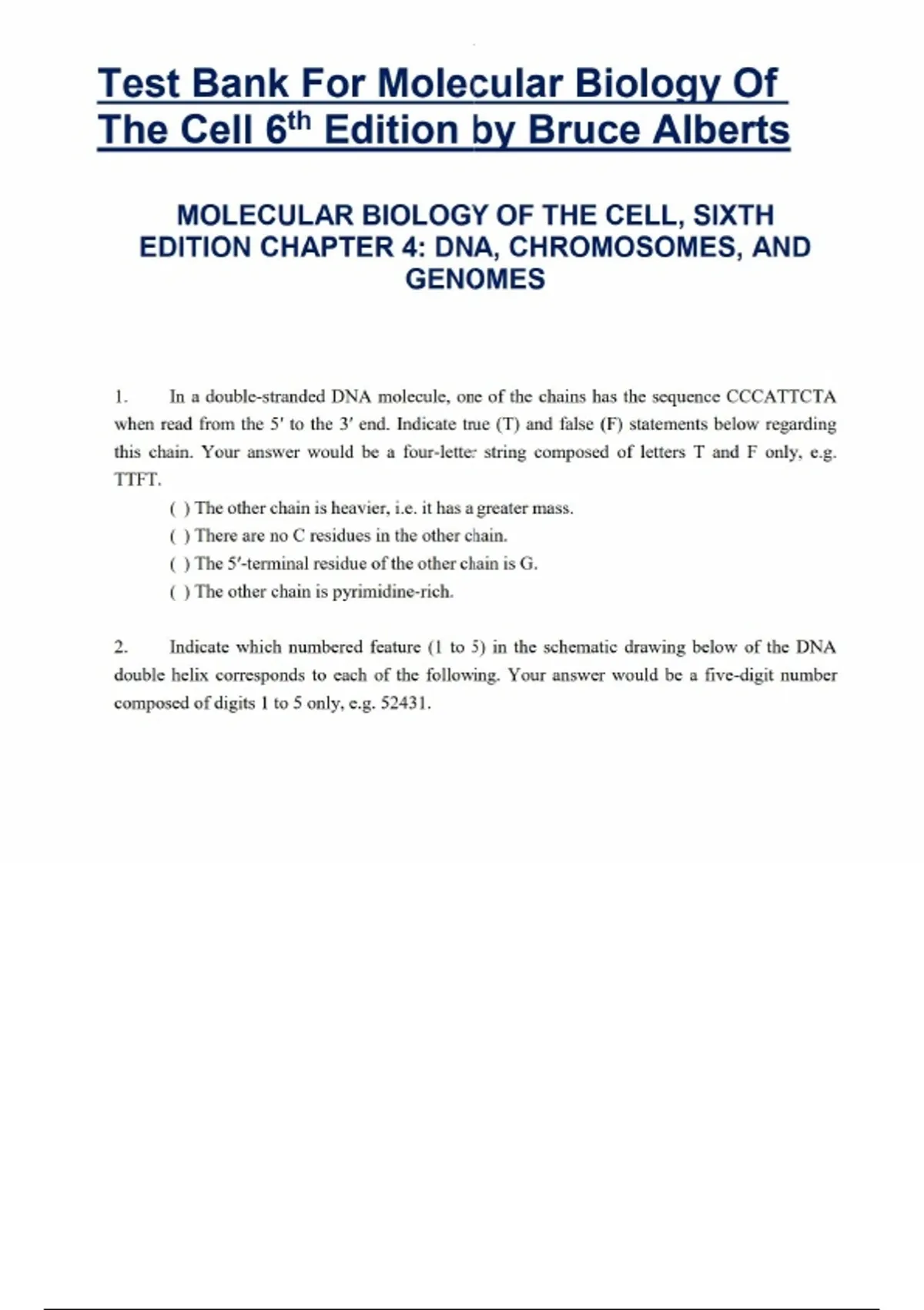 Test Bank for Molecular Biology of the Cell 6th Edition by Bruce ALBERTS Exam and Answers Graded A+