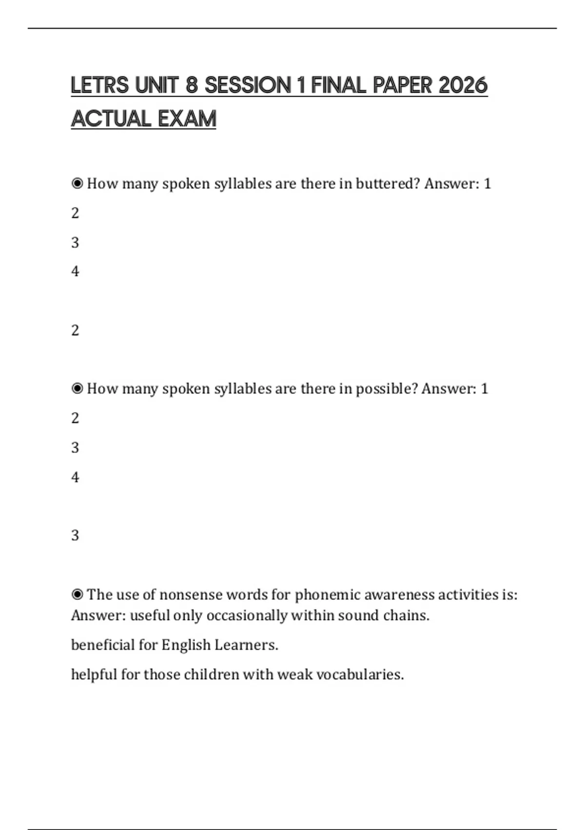 LETRS UNIT 8 SESSION 1 FINAL PAPER 2026 ACTUAL EXAM