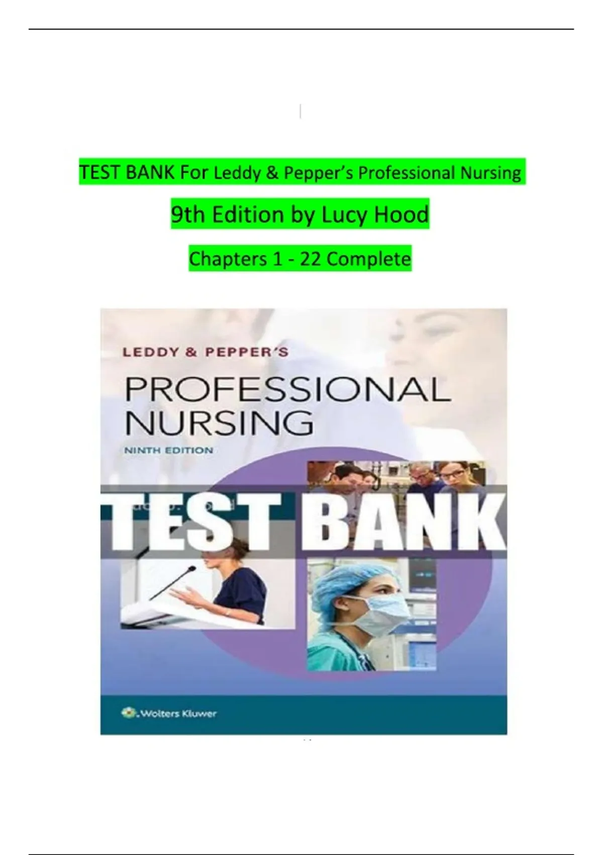 TEST BANK For Leddy & Pepper’s Professional Nursing 9th Edition by Lucy Hood Chapters 1 - 22 Complete