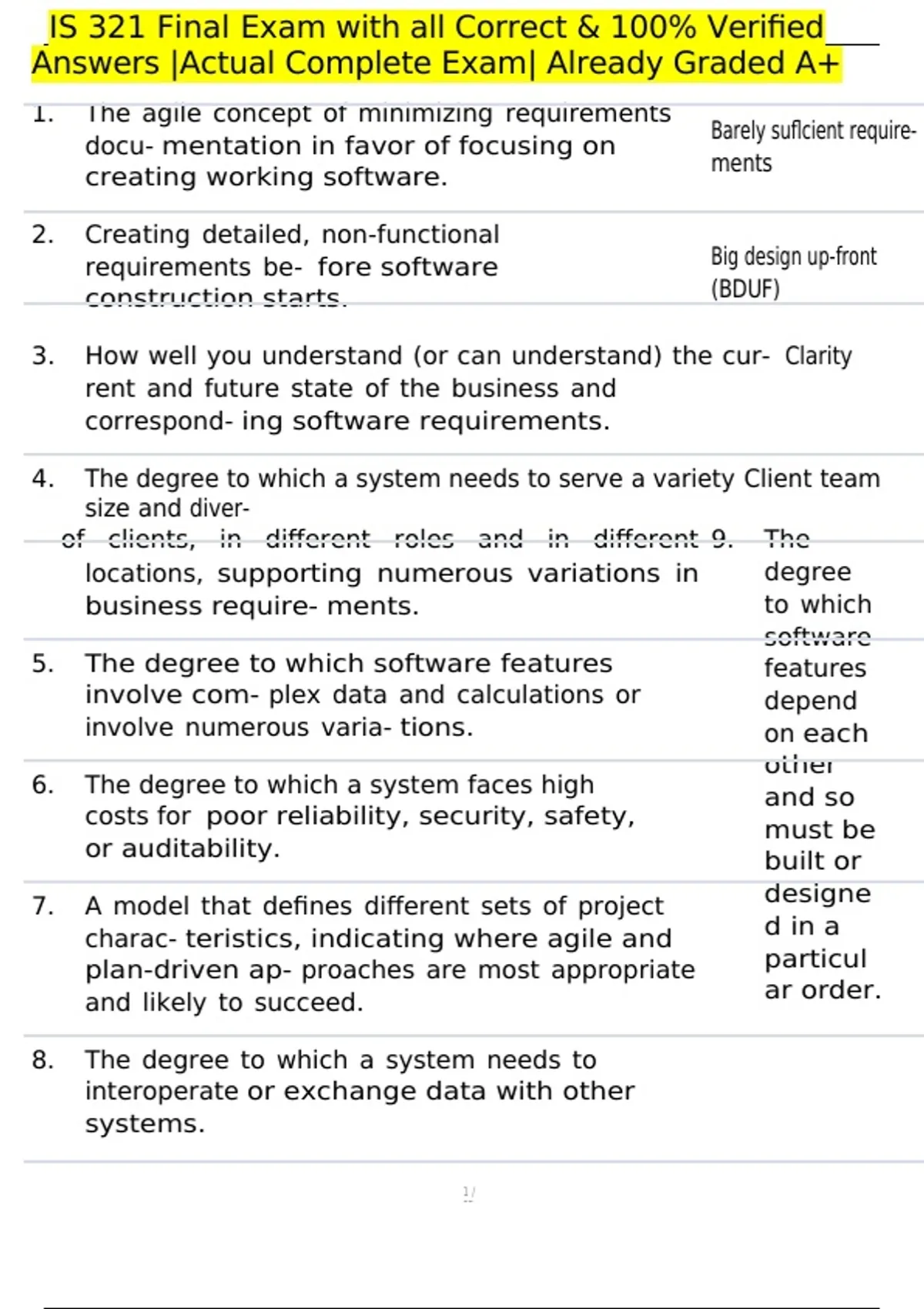 , IS 321 Final Exam with all Correct & 100% Verified