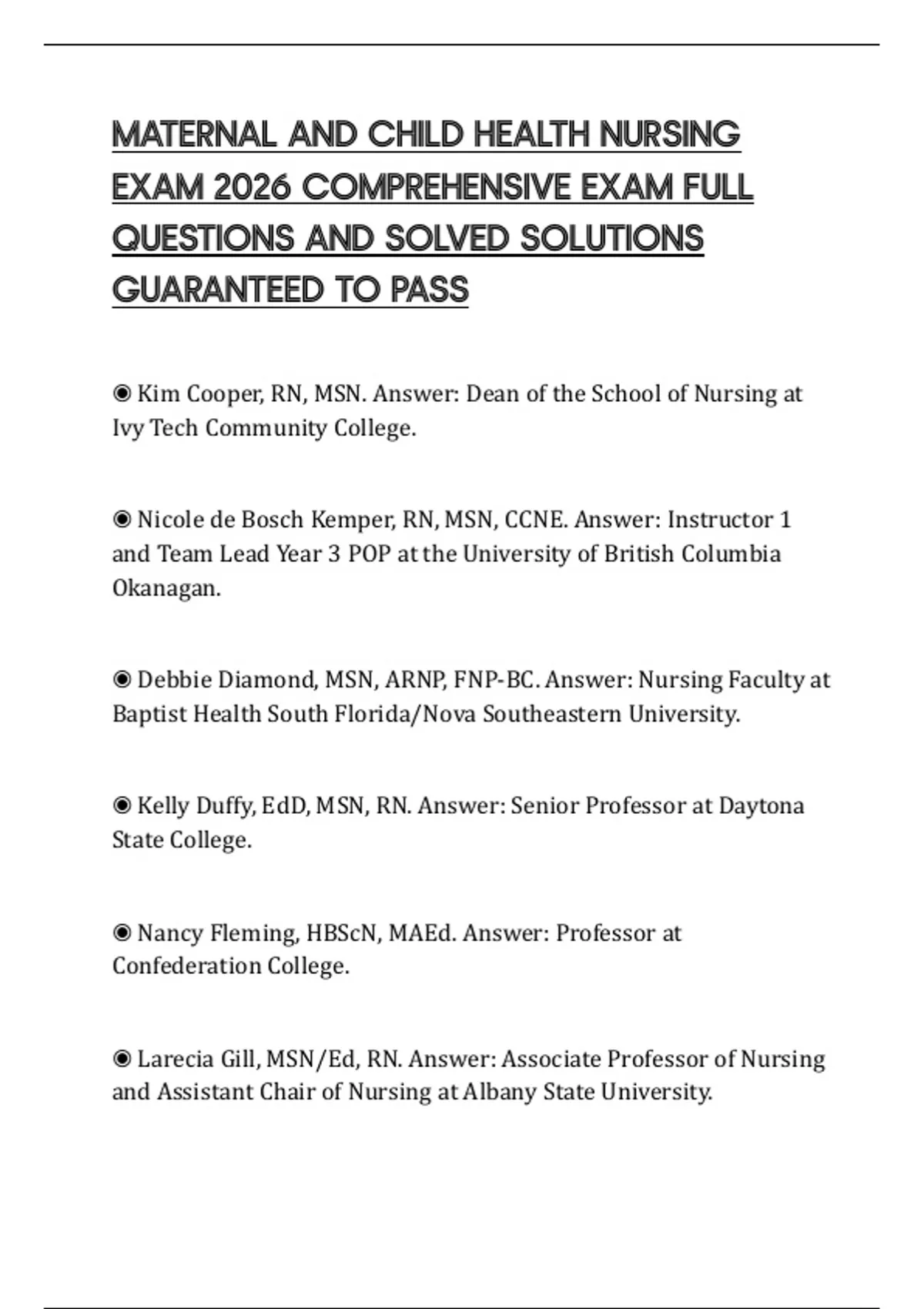 ◉ Nancy Fleming, HBScN, MAEd. Answer: Professor at