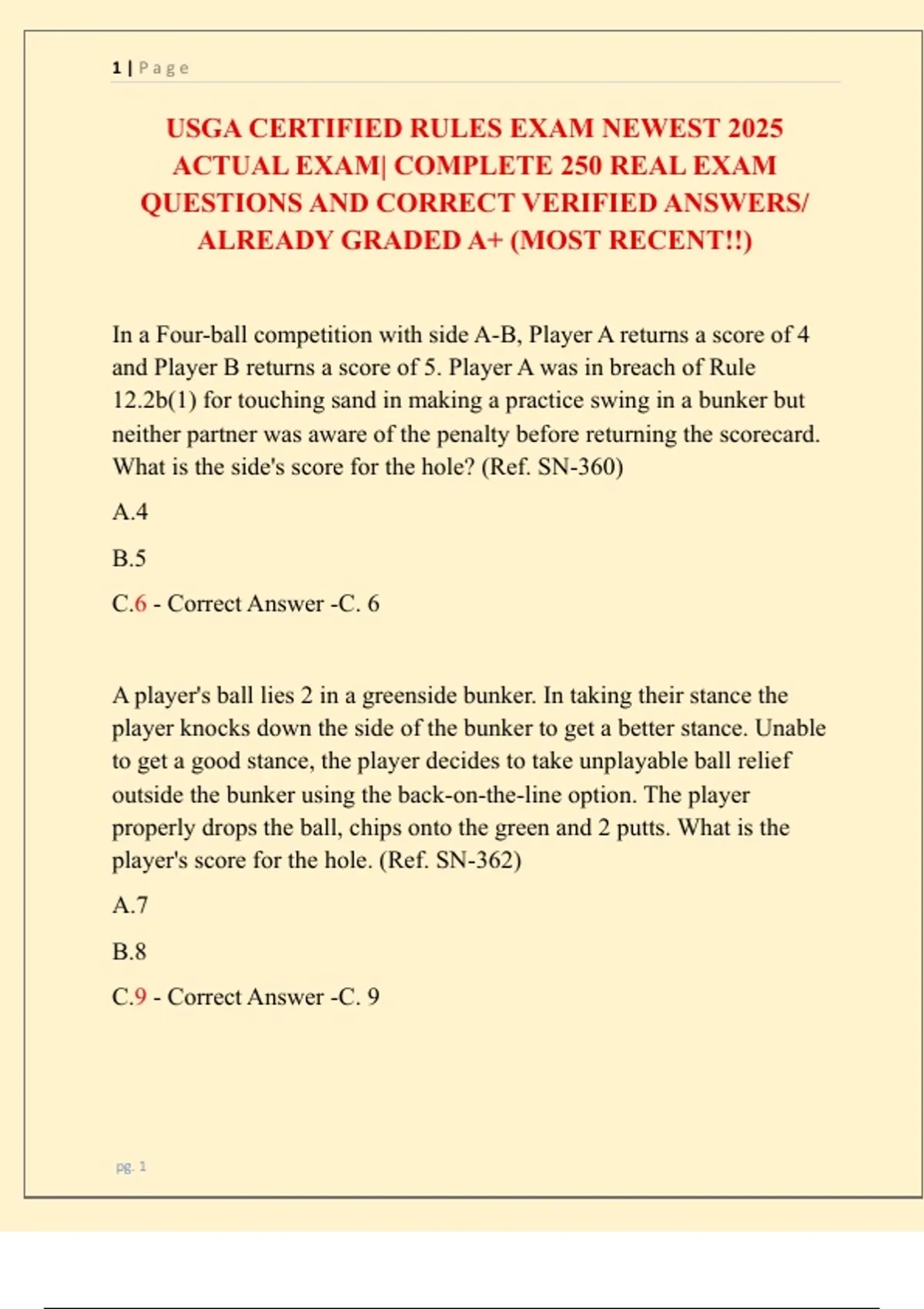 USGA CERTIFIED RULES EXAM NEWEST 2025
