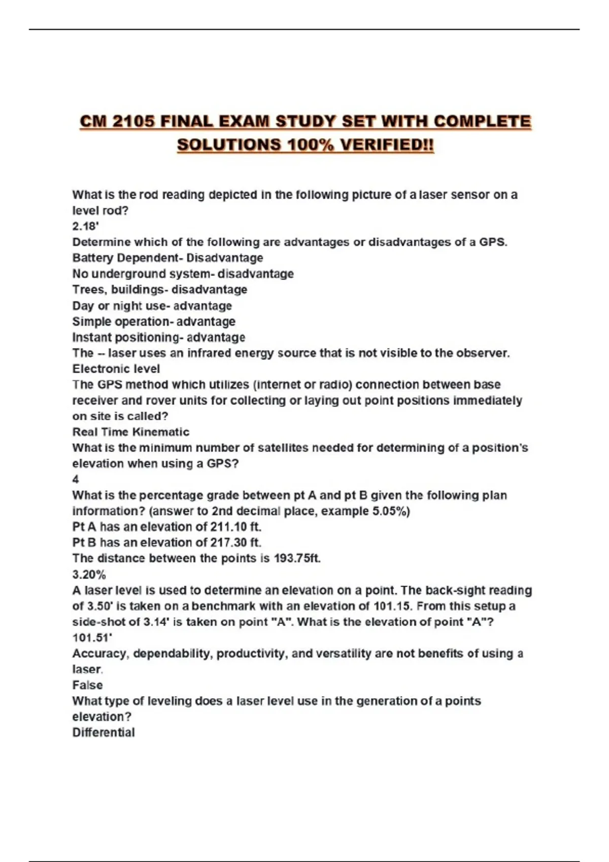 cm 2105 final exam study set with complete sol